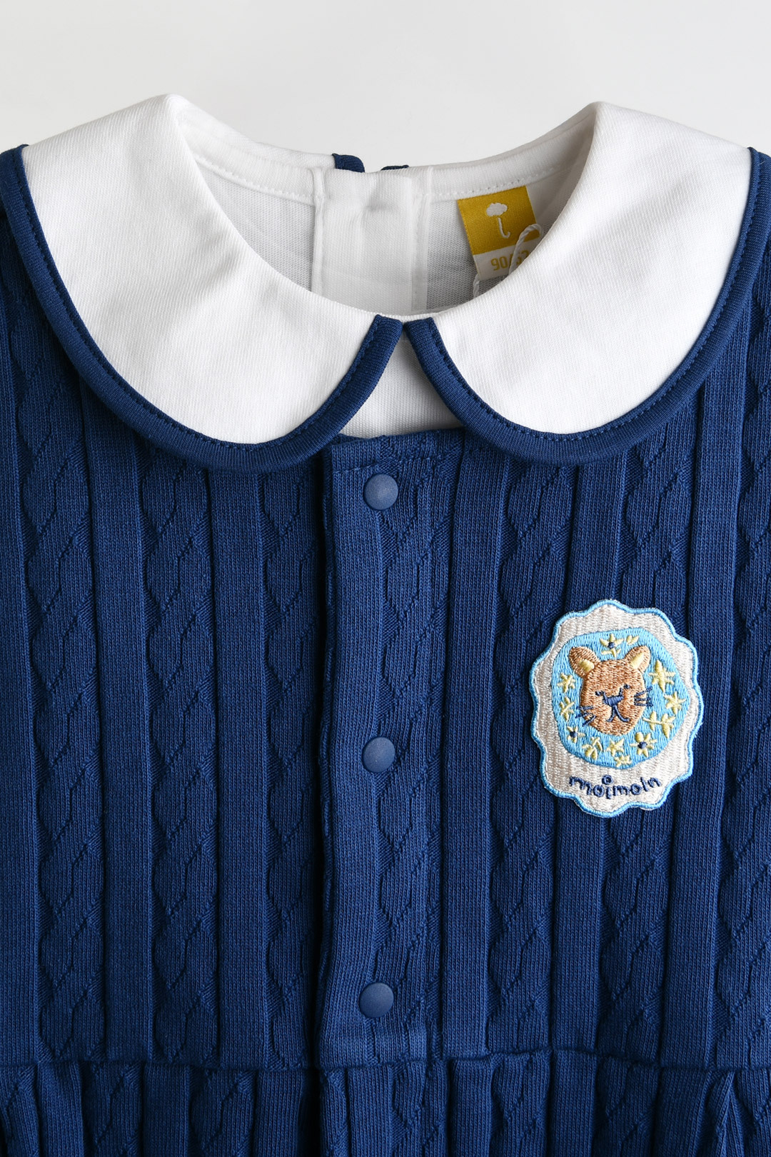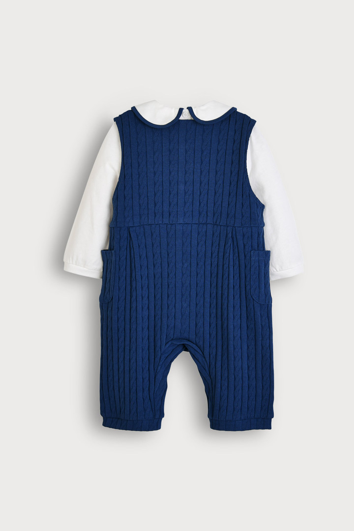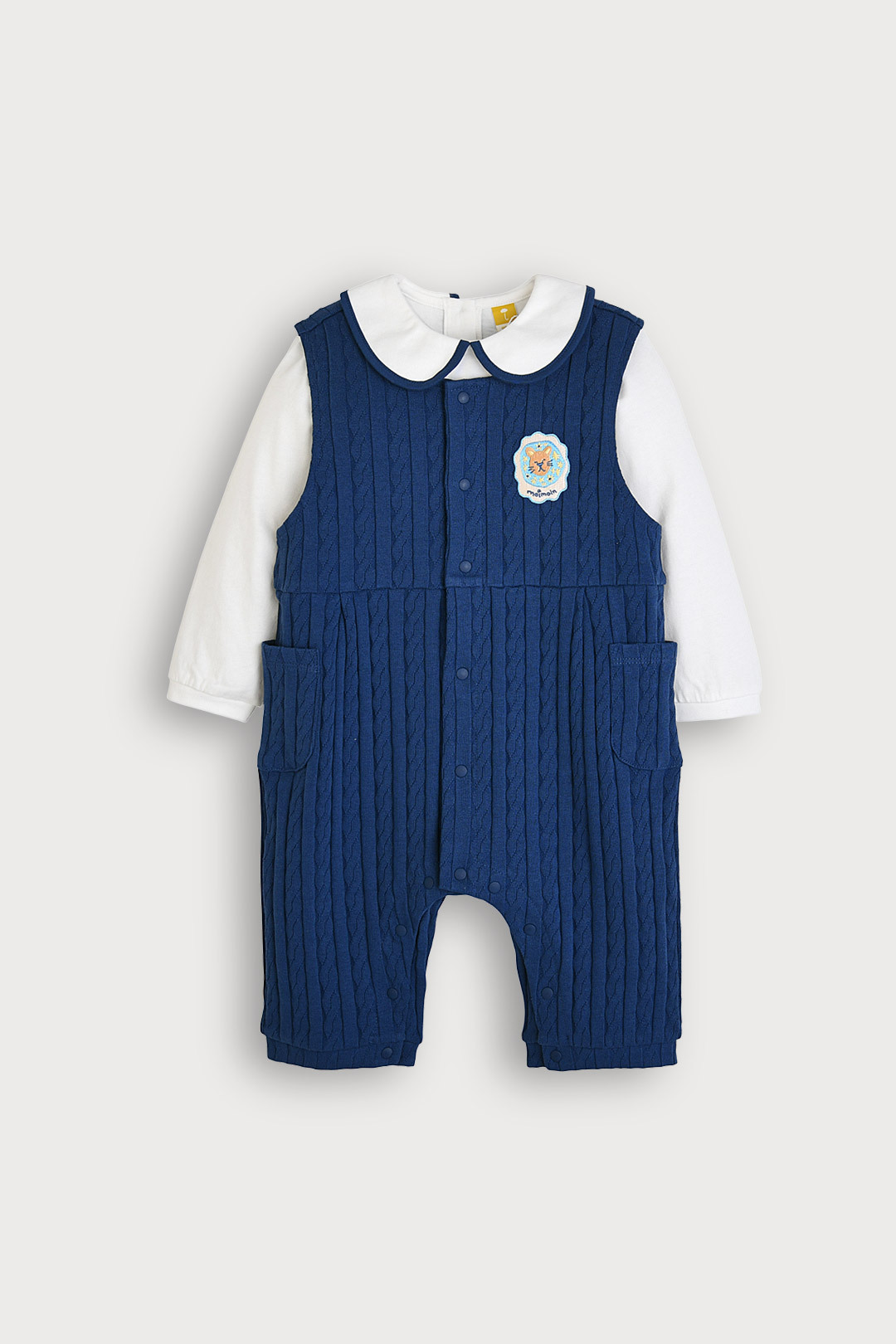 꽈배기 조직감으로 고급스러운 느낌을 주는 베이비·토들러용 니트라이크 오버올 세트 상품 설명 매일 입고 싶은 편안함을 선사하는 꽈배기 조직감의 니트라이크 오버올 상하복 손이 자꾸 가는 이유가 있는 옷으로 신축성이 좋아 아이들이 활동하기에 최적화 부담 없이 매일 찾게 되는 아이템이자 다양한 상의와 매치하기 좋은 뛰어난 실용성 심플하지만 결코 단순하지 않은 매력과 사자 와펜 포인트가 돋보이는 디자인 디테일 설명 고급스러운 꽈배기 조직감과 귀여운 사자 와펜 포인트 디자인 카라 티셔츠나 반팔 티셔츠 등 다양한 이너와 코디 가능한 활용도 사이즈 80호 90호 100호는 밑단 스냅 적용으로 기저귀 교체 및 착용 편리, 110호는 밑단 트임이 없는 디자인 제품 변형 방지를 위해 손세탁 권장 및 물에 장시간 침수 금지 핏가이드 핏 보통 두께 보통 / 신축성 있음 / 비침 없음 신축성이 있는 소재와 보통 핏으로 정사이즈 선택 시 편안한 활동 가능 소재 설명 상의(20수 싱글): 부드러운 촉감과 가벼운 무게감으로 착용감이 쾌적한 소재 하의(다이마루 자카드): 입체적인 조직감과 우수한 신축성을 갖춰 활동성이 뛰어난 소재