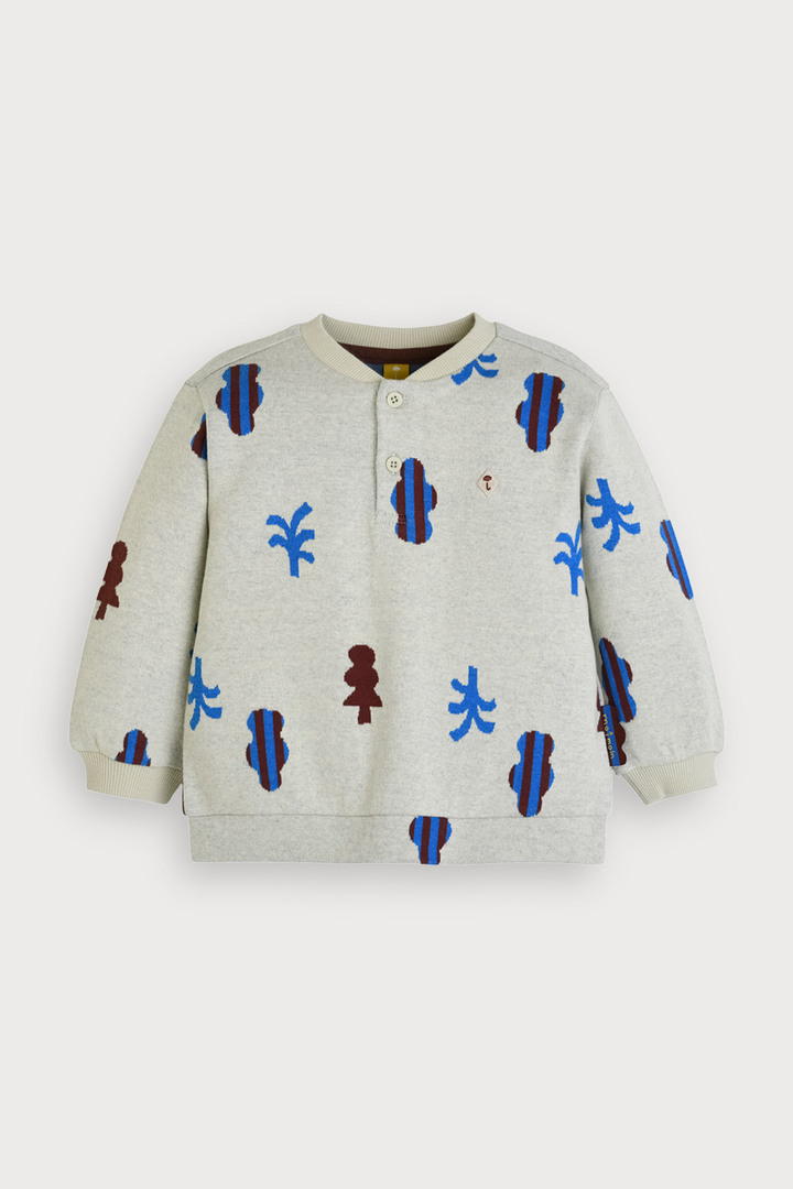 유니크한 기하학 도형 패턴과 헨리넥 디자인으로 실용성을 더한 자카드 상하복