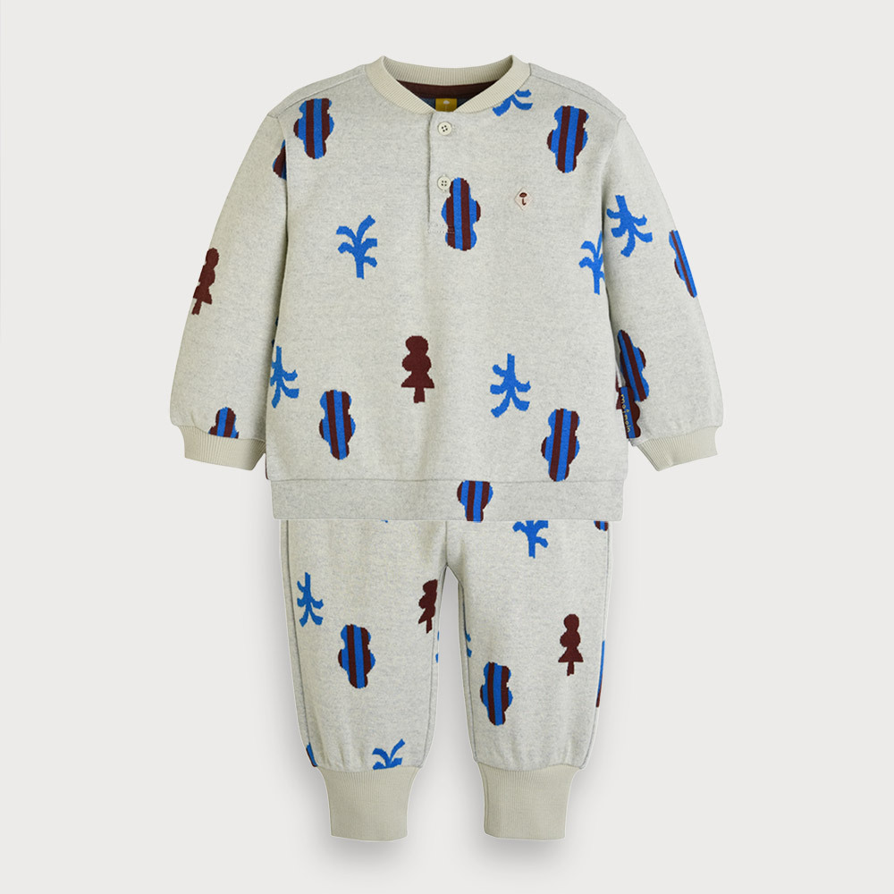단정한 실루엣에 숨어 있는 디테일이 매력적인 나무 모티브의 기하학 패턴 상하복 세트