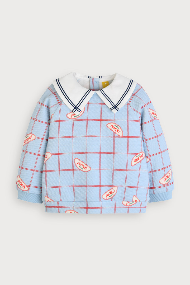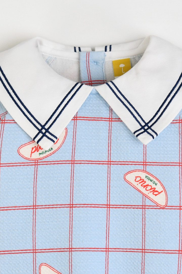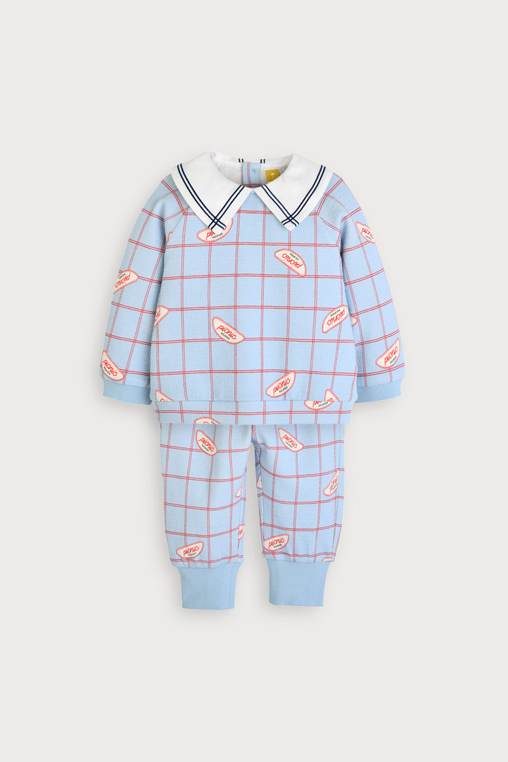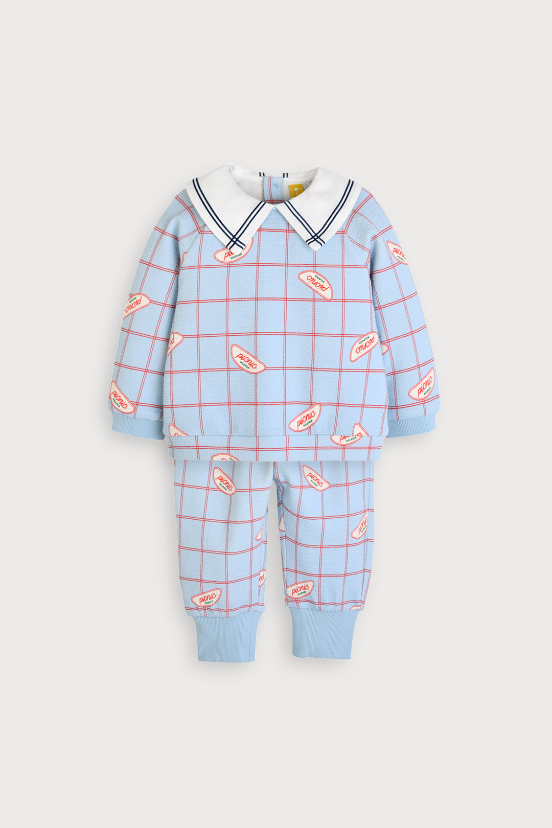 독특한 엠보감 소재와 발랄한 컬러에 단정한 카라를 더한 상하복