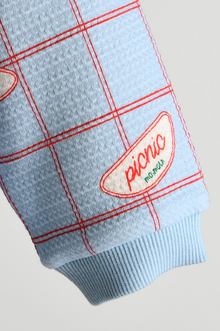겉감(다이마루 자카드): 입체적인 엠보감이 특징이며 신축성이 있어 착용감이 편안한 소재