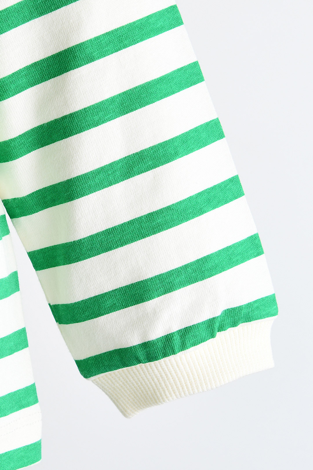 적당한 두께감의 화사한 컬러감이 돋보이는 스트라이프 티셔츠 상하복 세트