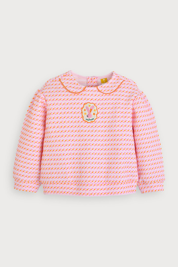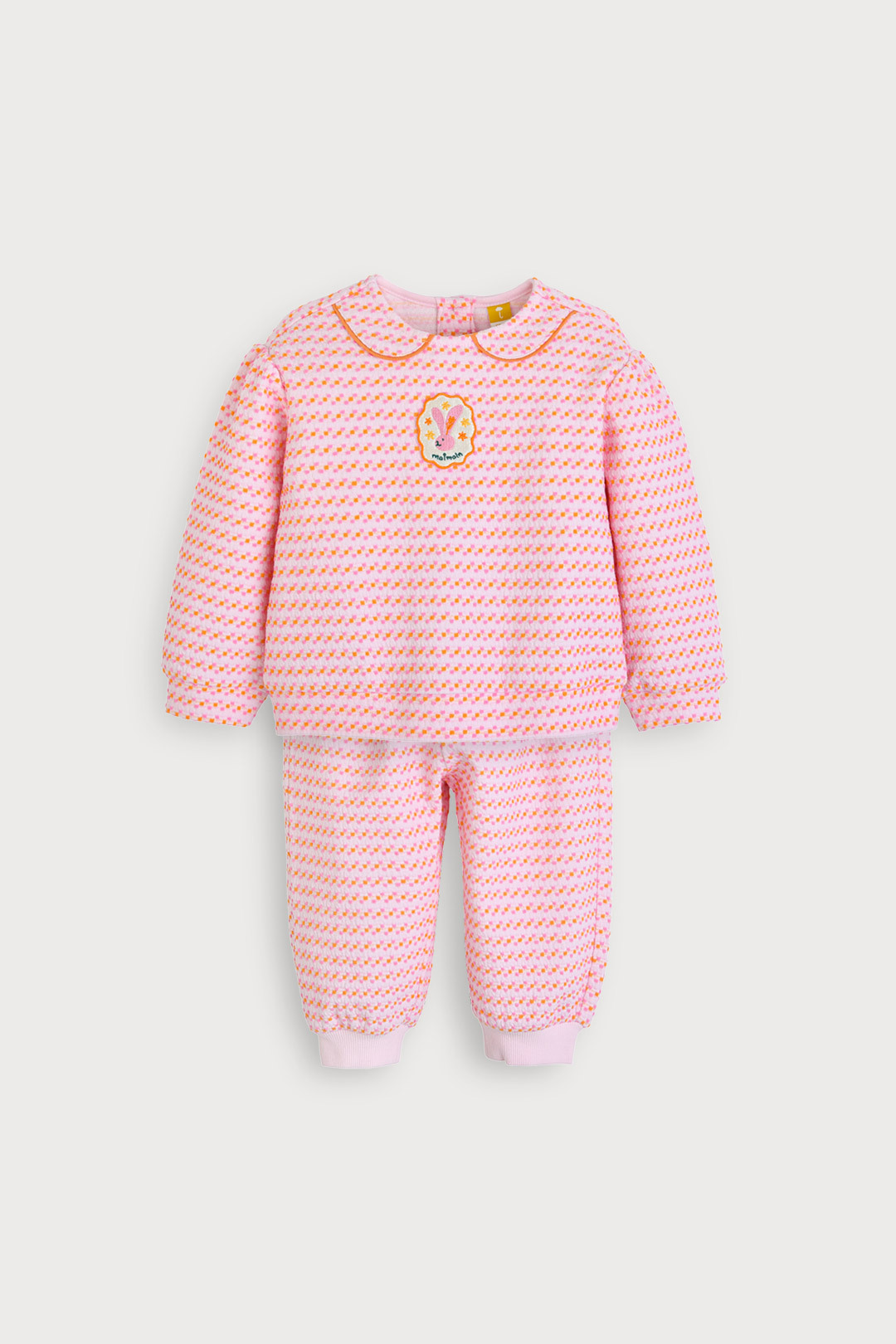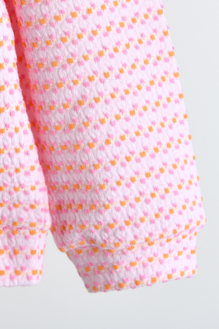 밝고 귀여운 컬러 조합과 고급스러운 니트 조직감의 자카드 상하복