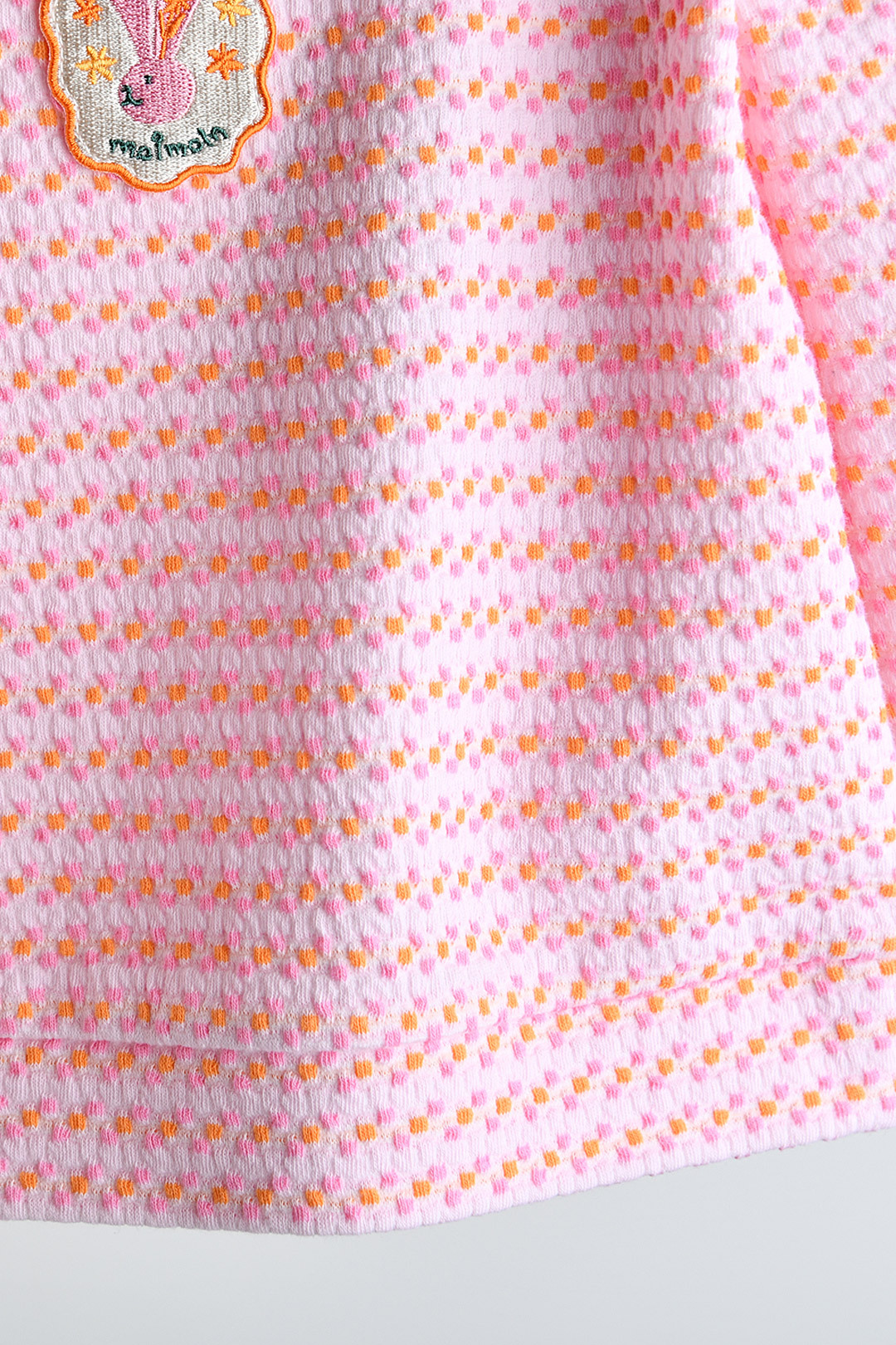 겉감(다이마루 자카드): 부드러운 니트 감촉과 적당한 신축성으로 아이들이 활동하기에 편안한 소재