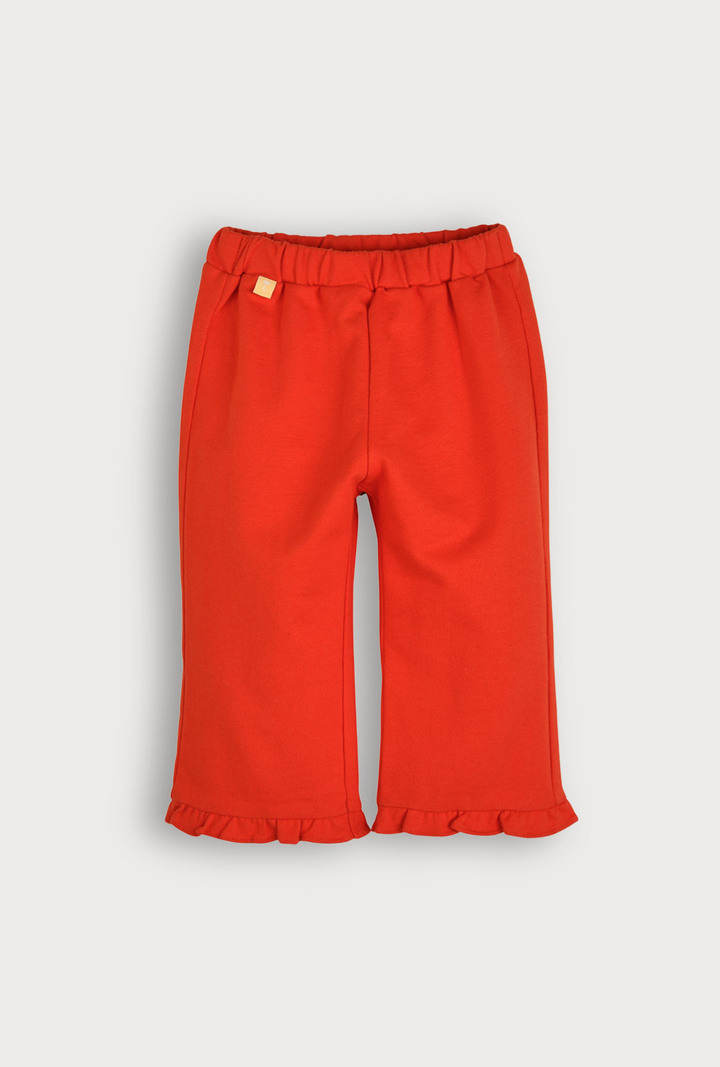 팬츠 밑단 프릴 장식과 활동적인 세미 와이드 핏 적용