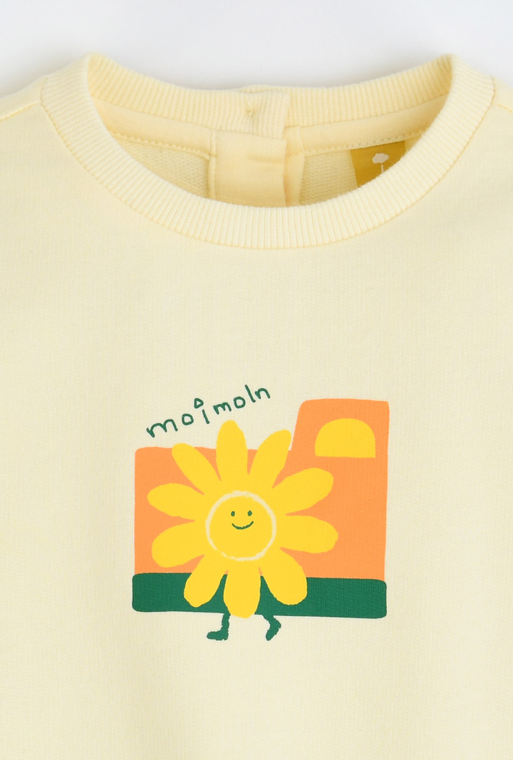 매일 입고 싶은 편안함을 선사하는 귀여운 그래픽 포인트의 맨투맨 상하 세트