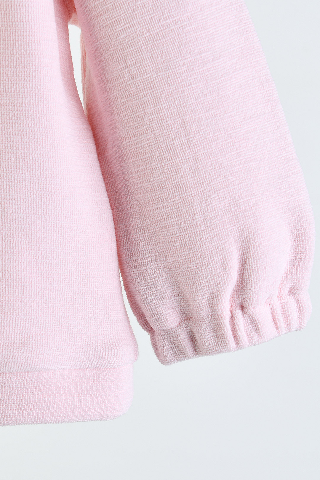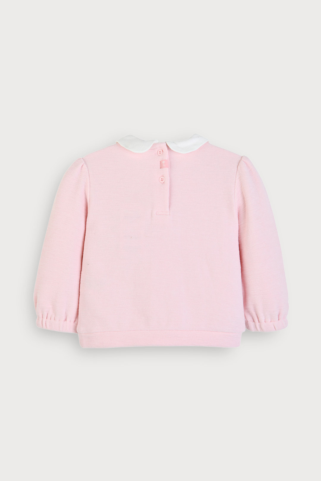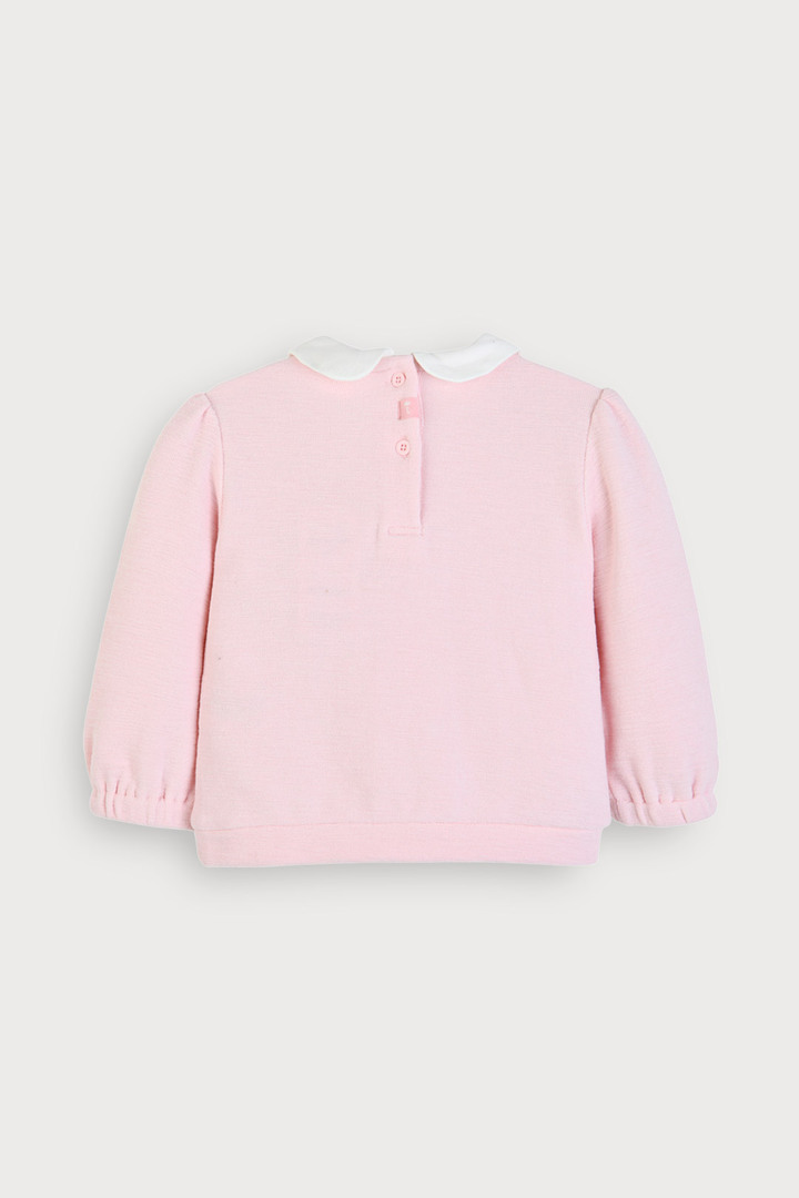 소프트하고 러블리한 컬러감과 신축성 좋은 조직감 소재의 쁘띠 카라 티셔츠. 십자수로 짠듯한 토끼 그래픽이 러블리하고 귀여움을 더해준 아이템