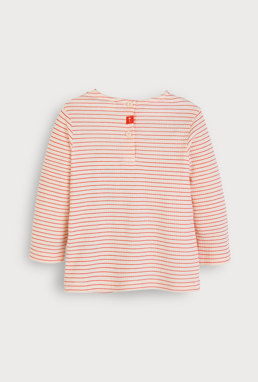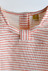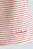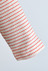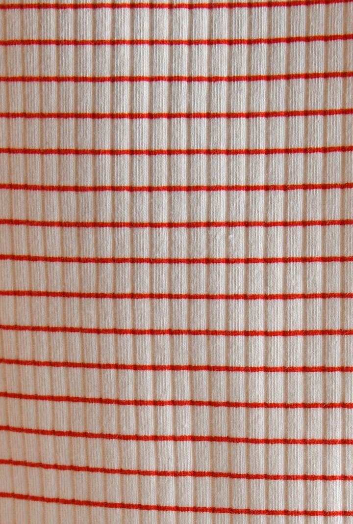 선명한 컬러 포인트: 화사한 레드 스트라이프 패턴으로 얼굴빛을 살려주는 포인트 룩 완성