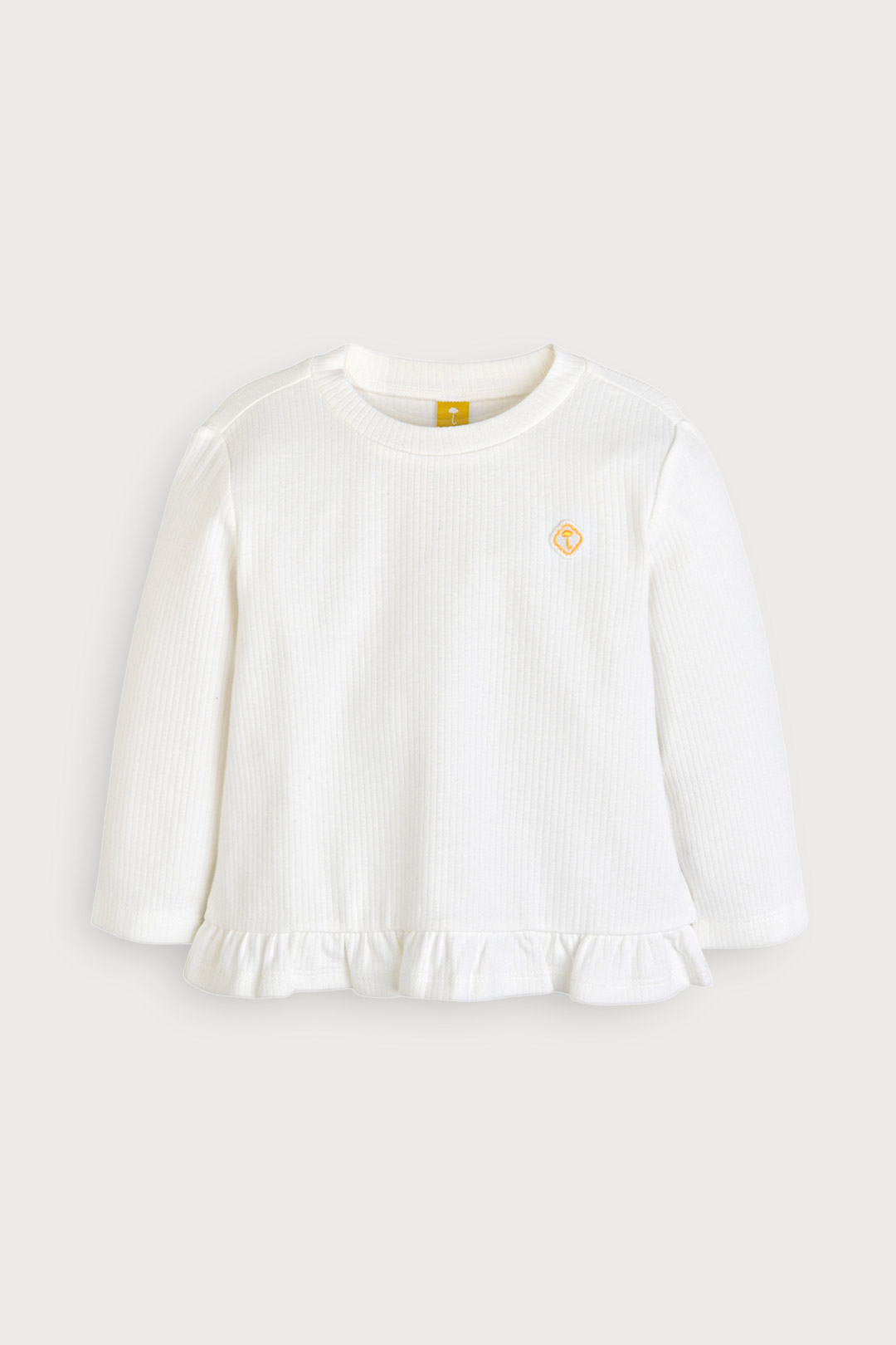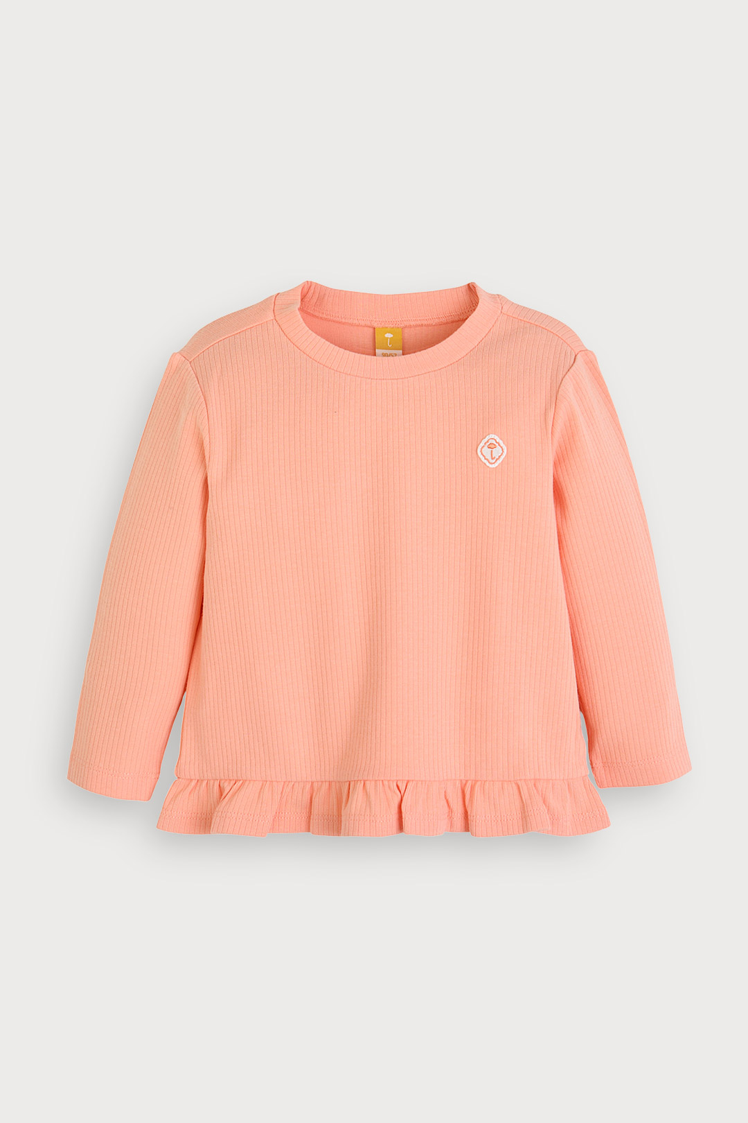 신축성이 뛰어난 레이온 골지 스판 소재와 밑단 프릴로 사랑스러움을 더한 티셔츠