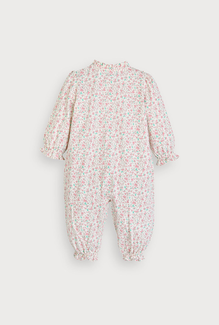 로맨틱한 디테일: 화이트 레이스와 프릴 포인트가 돋보이는 사랑스러운 우주복 디자인