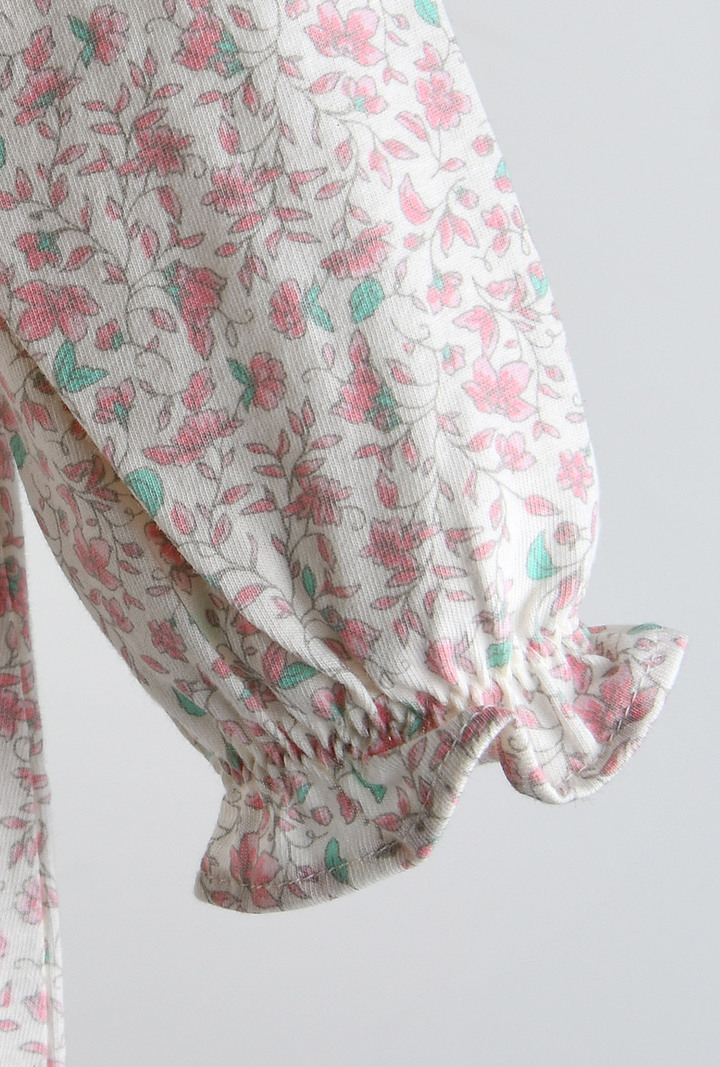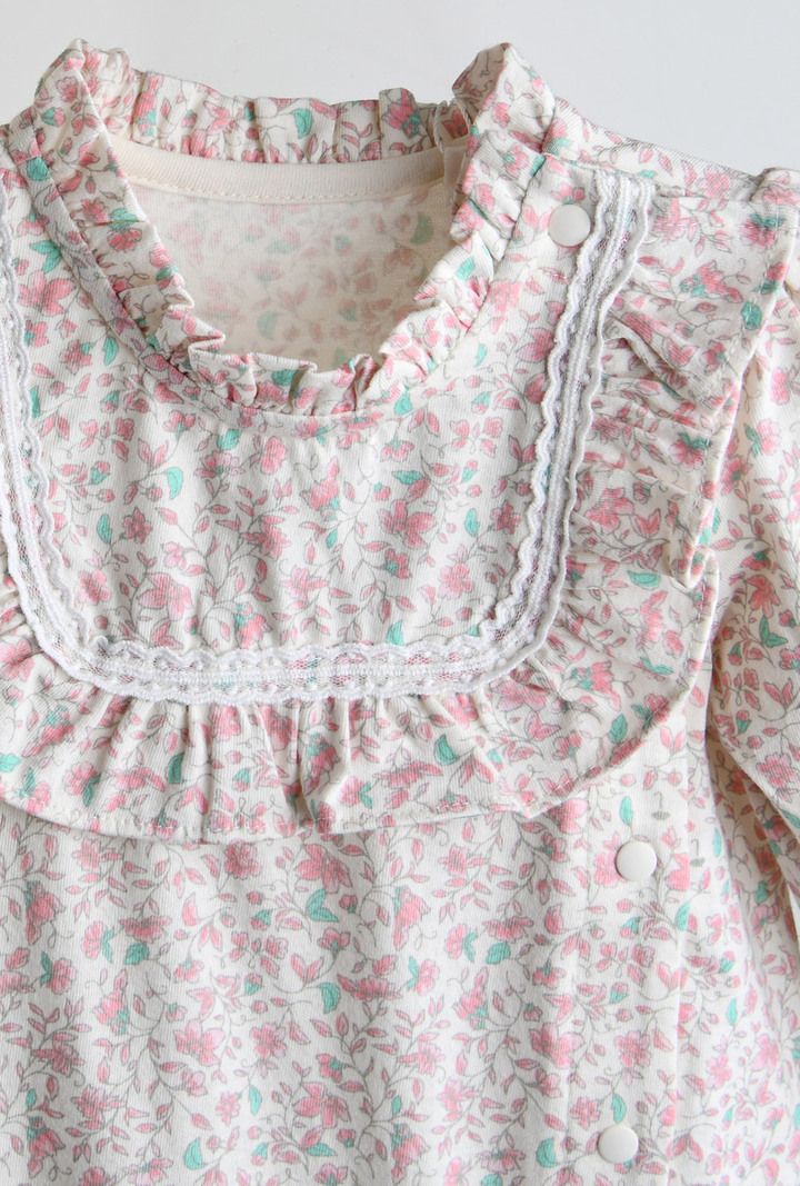 A2. 플라워 나염에 화이트 레이스와 프릴로 사랑스러운 포인트를 주었습니다.
