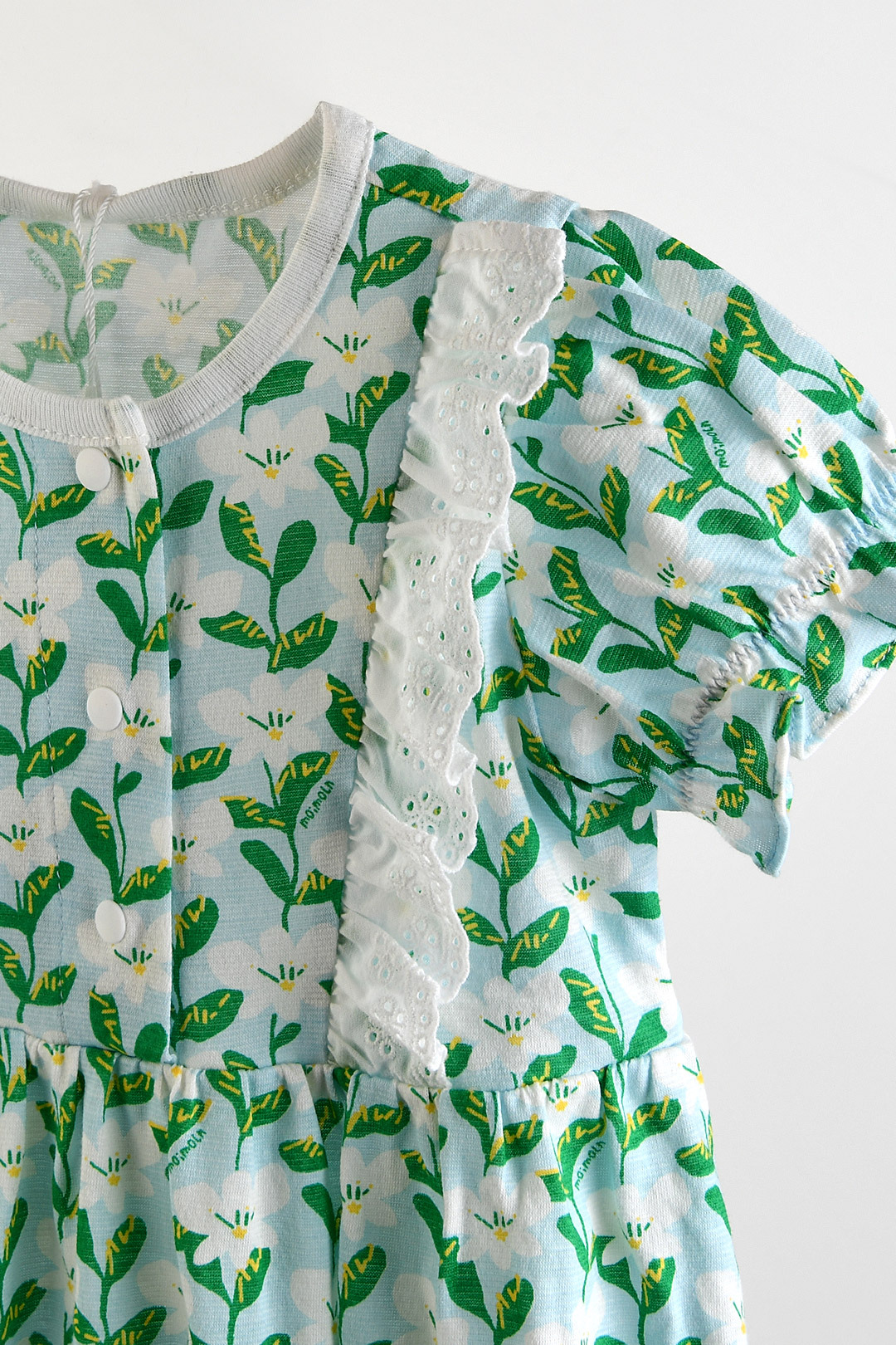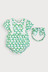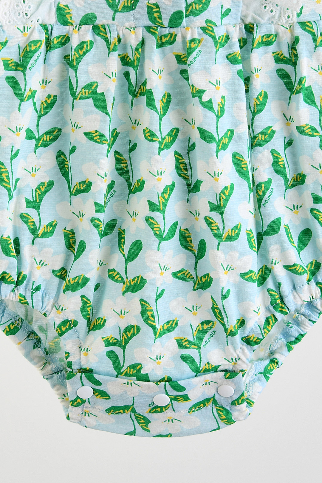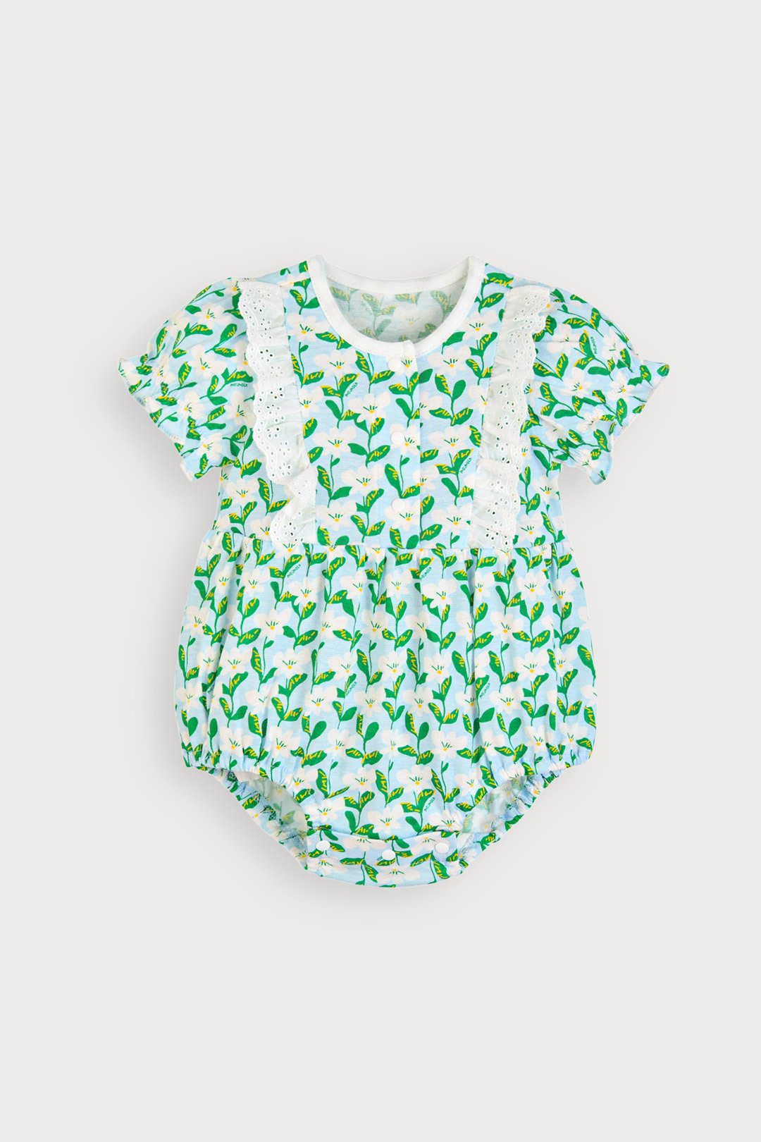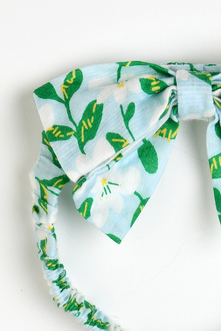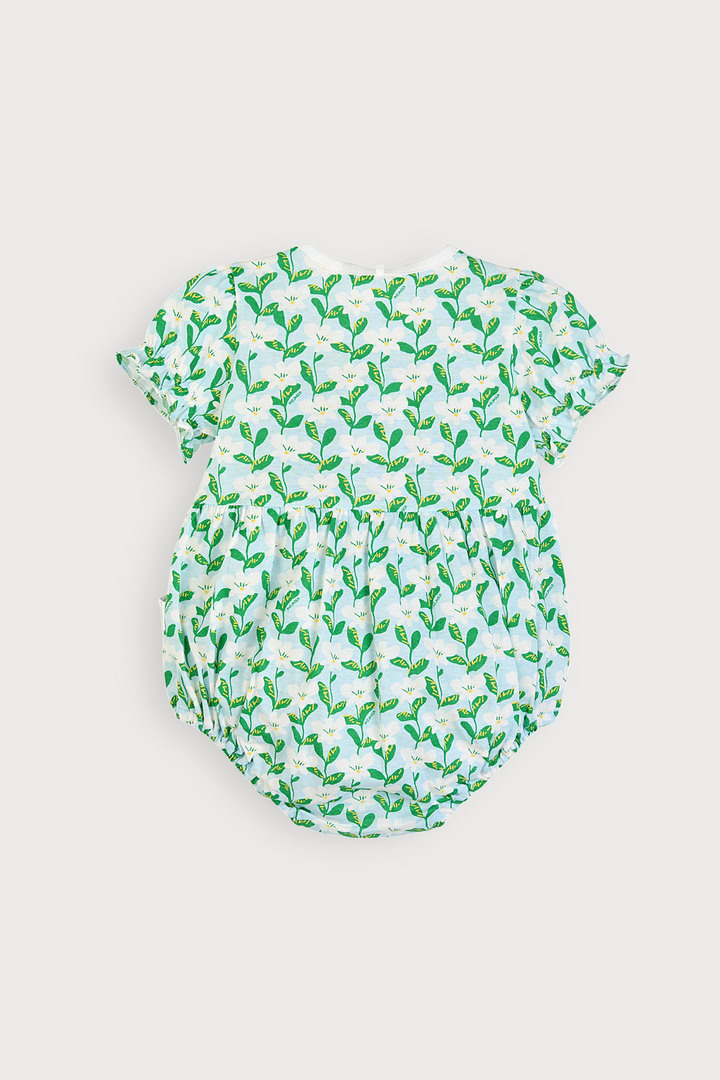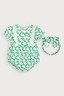 푸릇푸릇한 무드의 나염에 레이스 장식을 더해 여름의 싱그러움이 느껴지는 아이템. 헤어밴드까지 함께 구성되어 사랑스러운 스타일링은 물론 실용성까지 갖춘 바디수트세트.