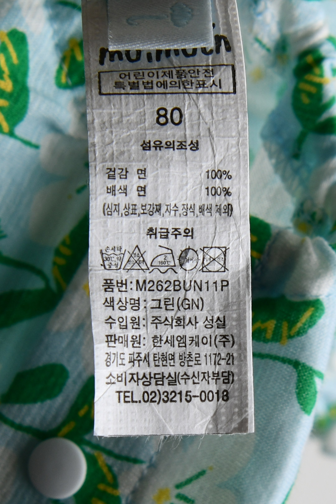 | 세탁방법 및 취급시 주의사항 | 본 세품은 손세탁 하십시오(케어라벨 참고) |