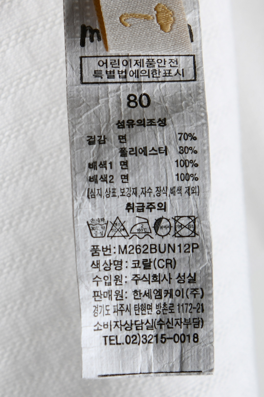 | 세탁방법 및 취급시 주의사항 | 본 세품은 손세탁 하십시오(케어라벨 참고) |