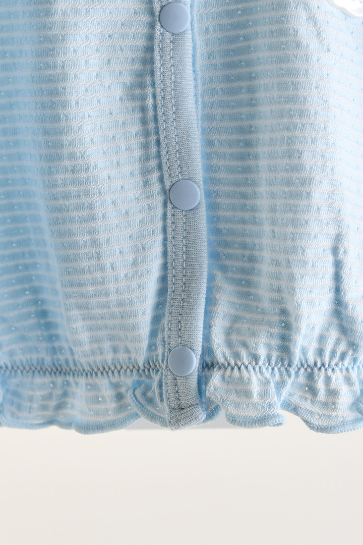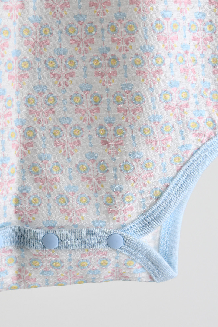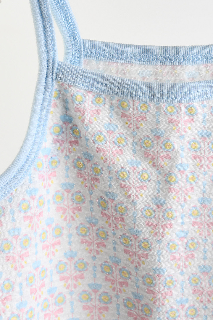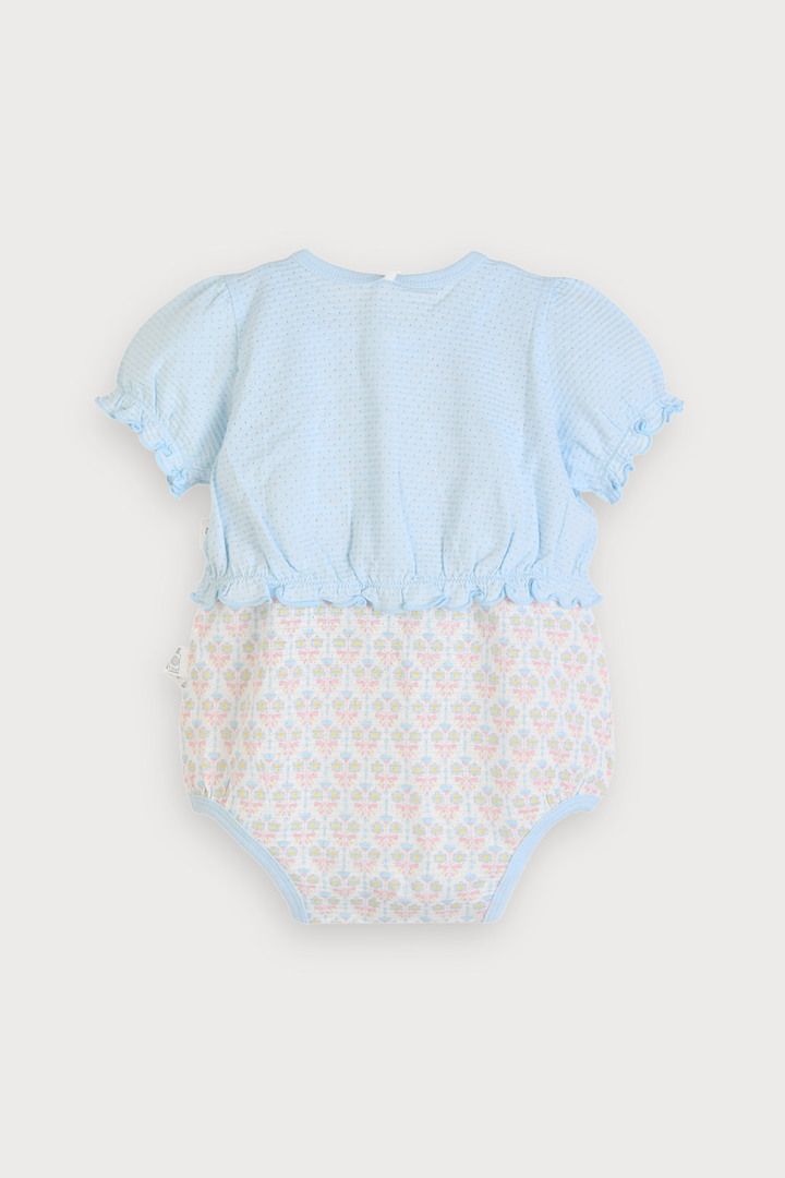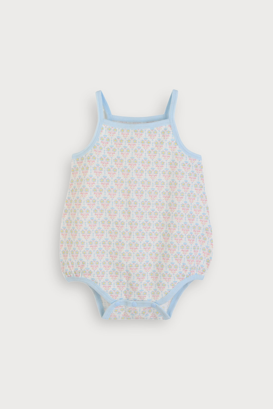 빠른 속도로 땀을 흡수하고 건조시켜 피부에 시원함을 유지해주는 쿨에버 소재를 사용하고, 모이몰른의 유니크한 플라워 무드가 잘 표현된 나염의 나시 바디슈트와 가디건을 함께 구성해 실내에서는 내복으로, 외출 시에는 가볍게 걸쳐 입을 수 있도록 디자인한 실용적인 나시 바디수트 세트.