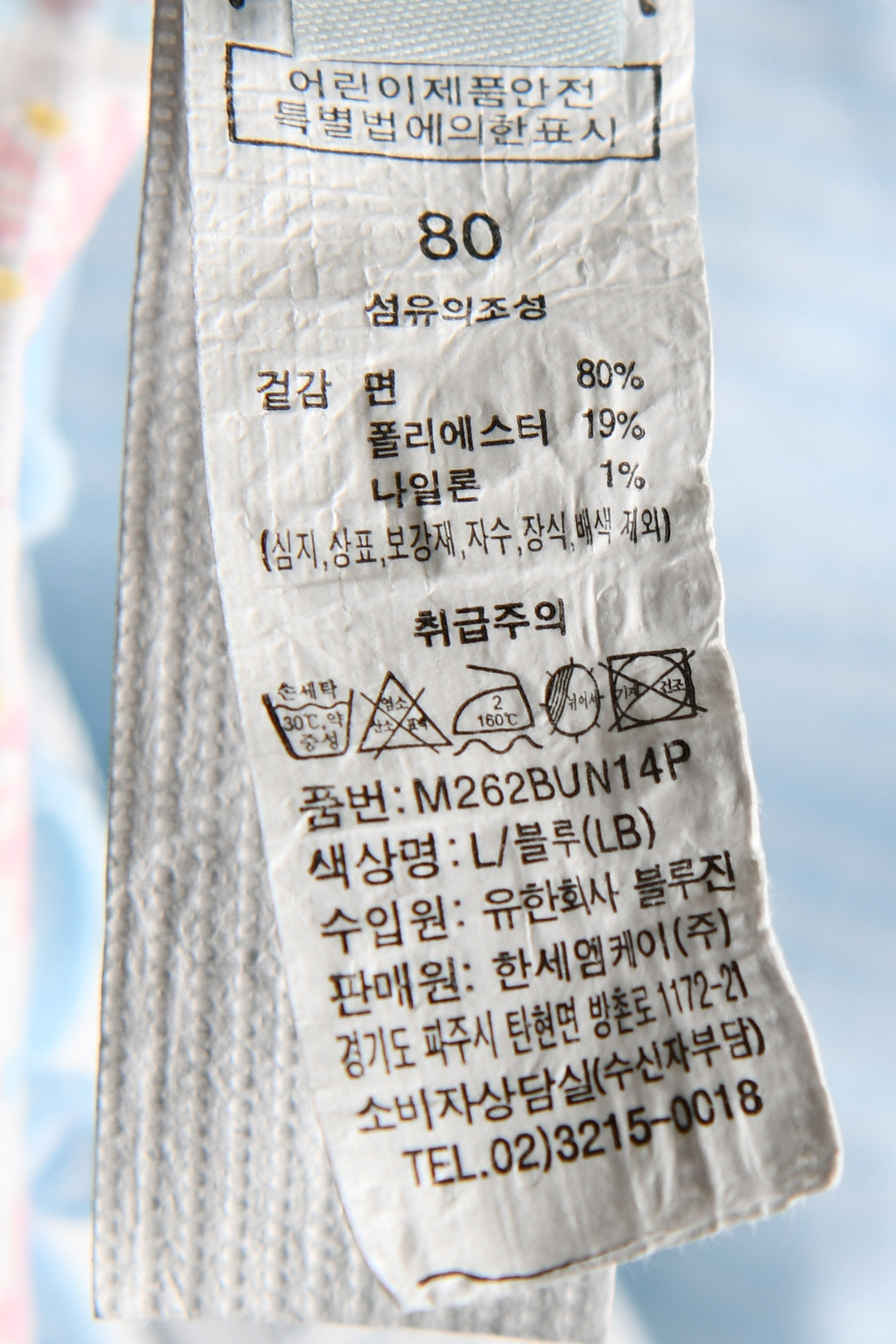 | 세탁방법 및 취급시 주의사항 | 본 세품은 손세탁 하십시오(케어라벨 참고) |