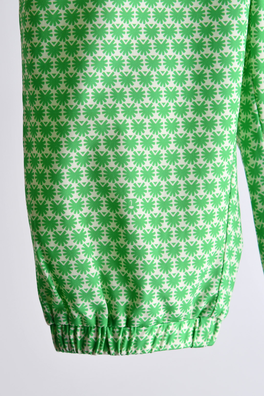 도형 모티브의 전판 나염으로 유니크하며 조거핏이 귀엽고 편안하여 활동성 좋은 아이템.