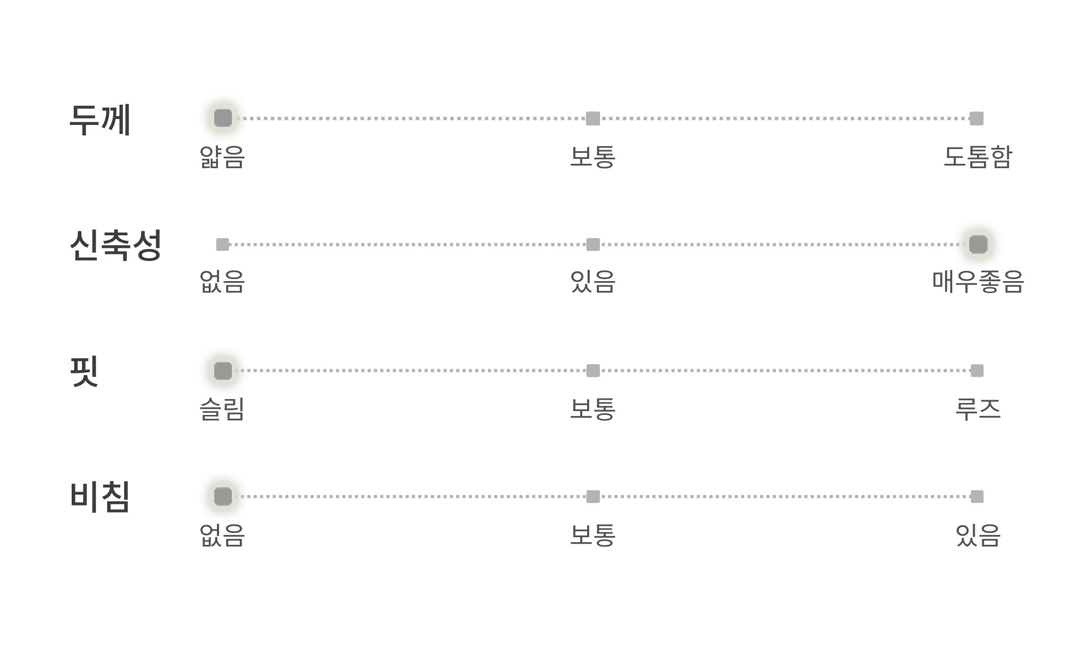 브랜드 홈 바로가기| 제품소재 | (겉감)레이온53%,면44%,폴리우레탄3% |