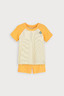 항균 및 소취 효과가 우수한 부드러운 밤부 소재로 블루와 옐로우 컬러로 컬러 배색이 있음. 어디서나 편안하게 입을 수 있는 실내복으로 직조 라벨이 포인트인 아이템.