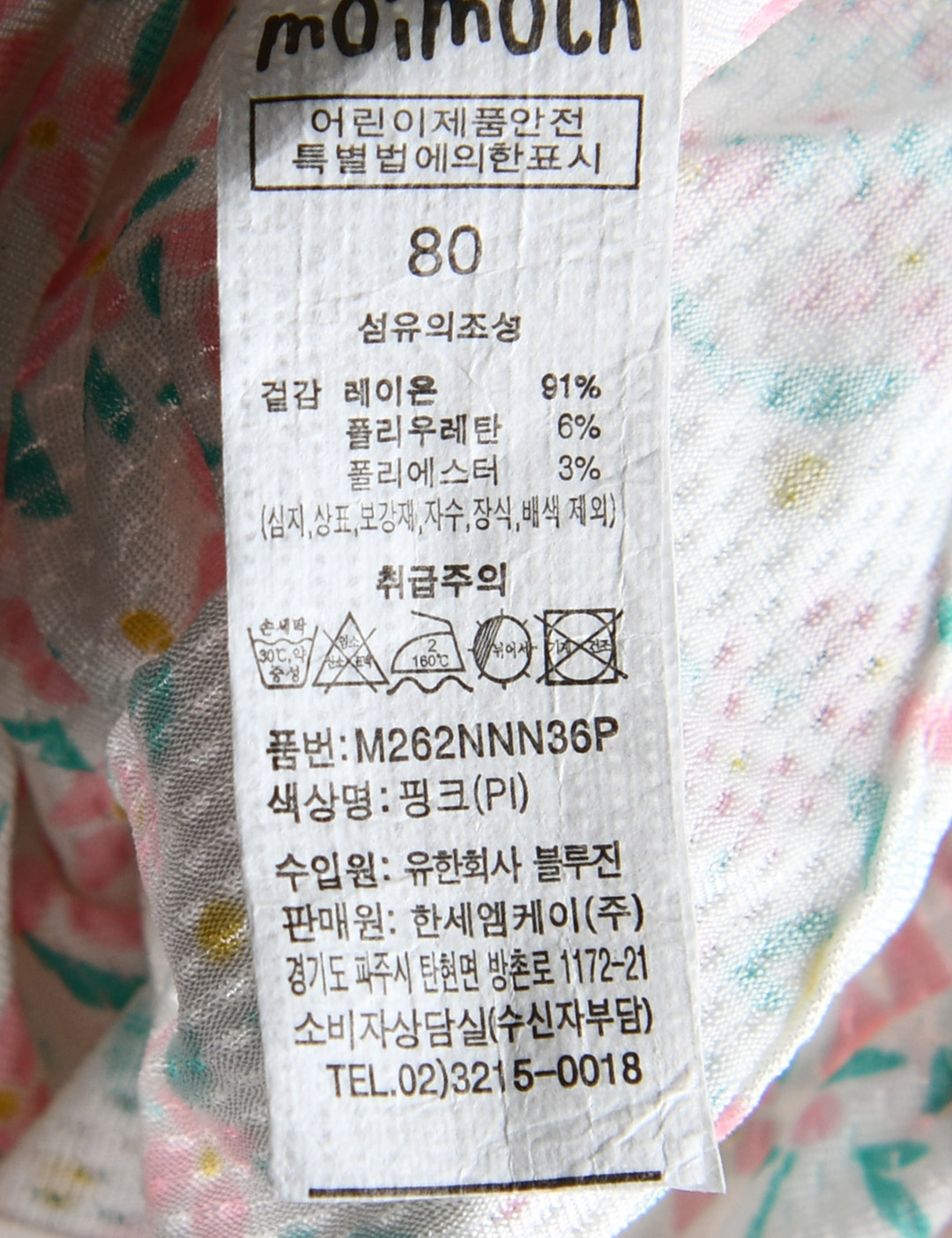 | 세탁방법 및 취급시 주의사항 | 본 세품은 손세탁 하십시오(케어라벨 참고) |