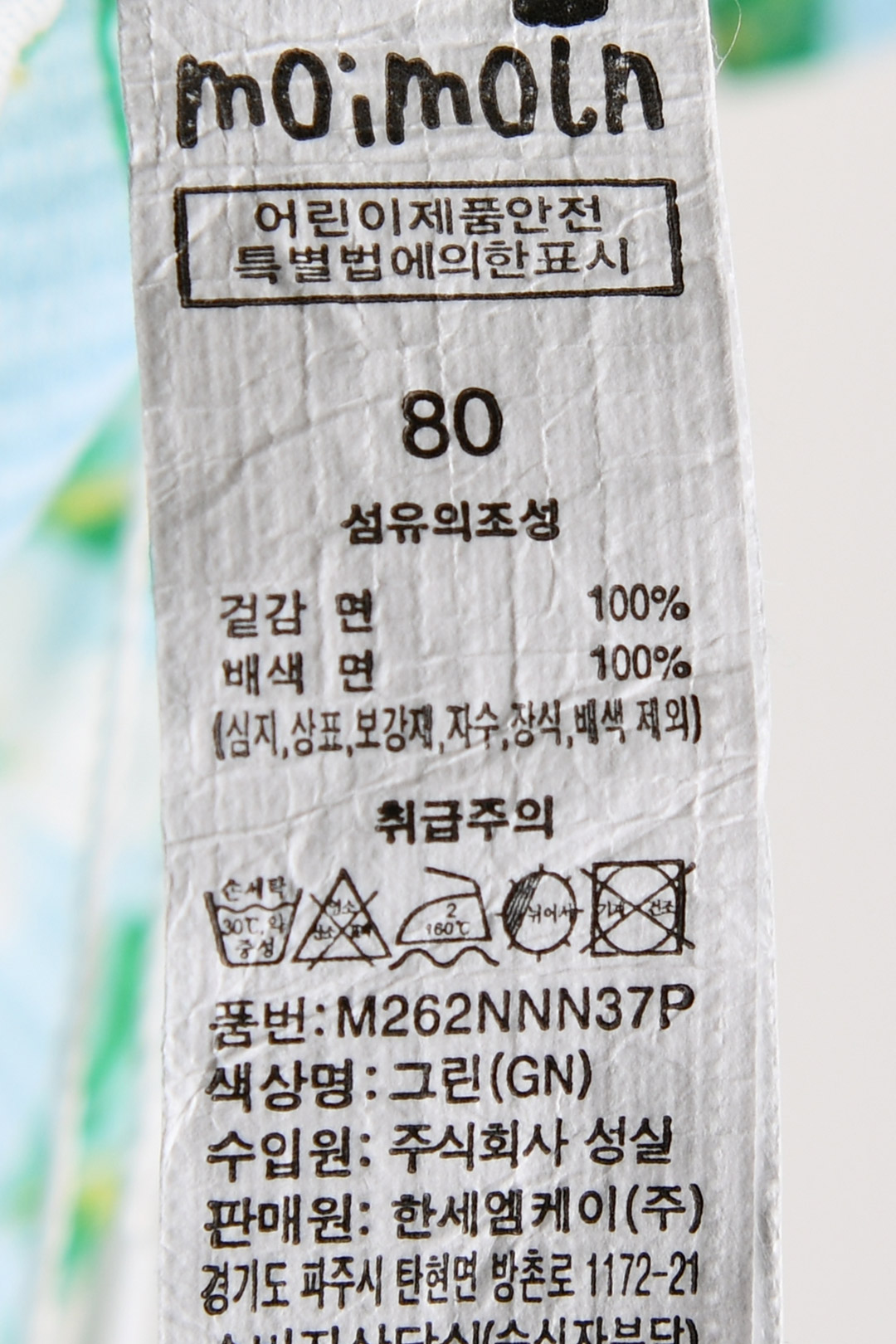 제품소재 (겉감/배색)면100%
