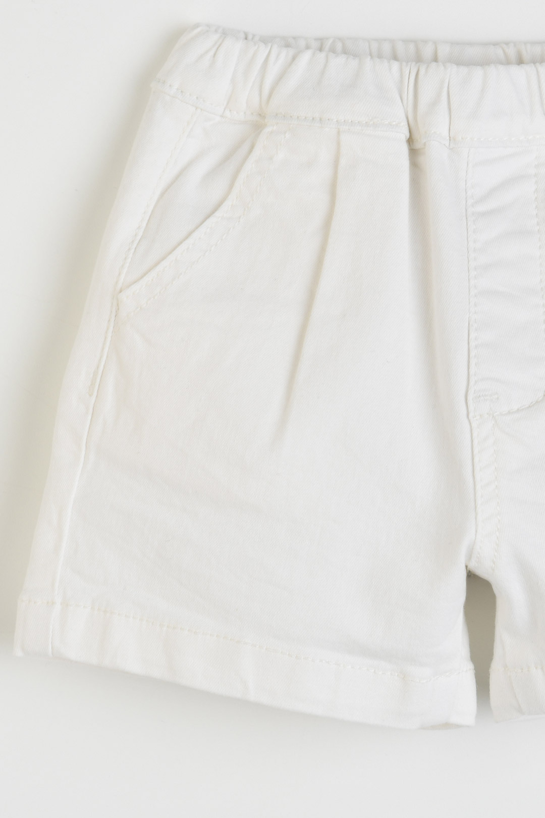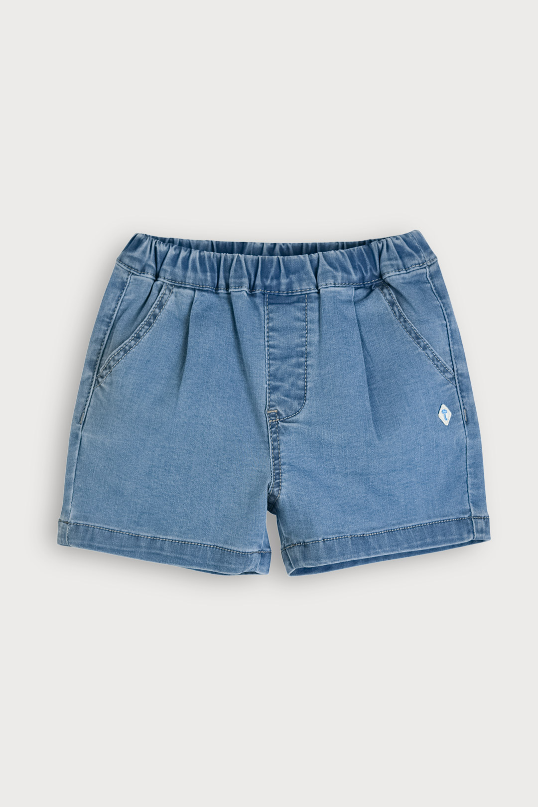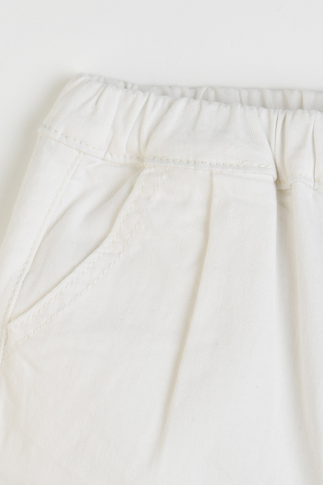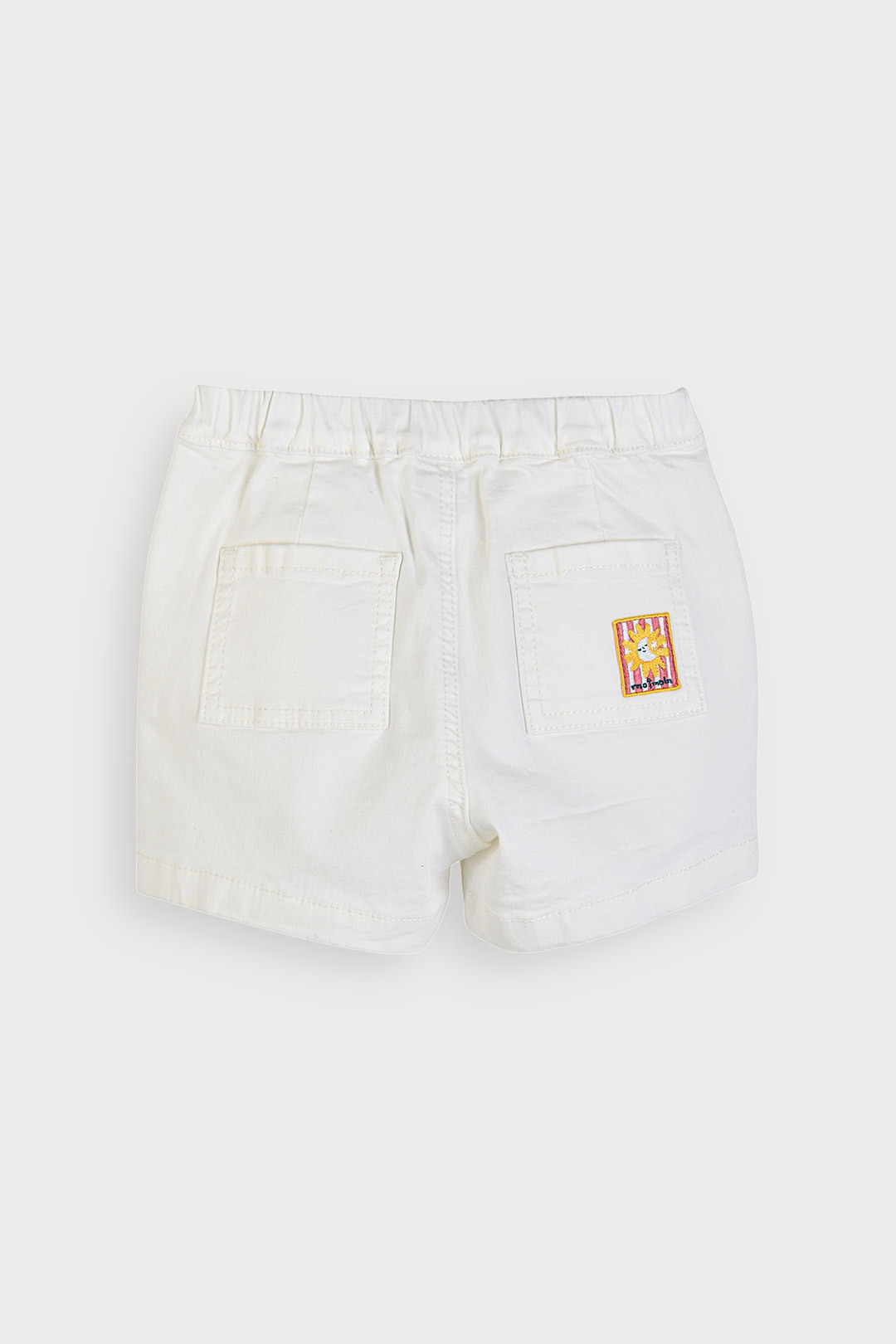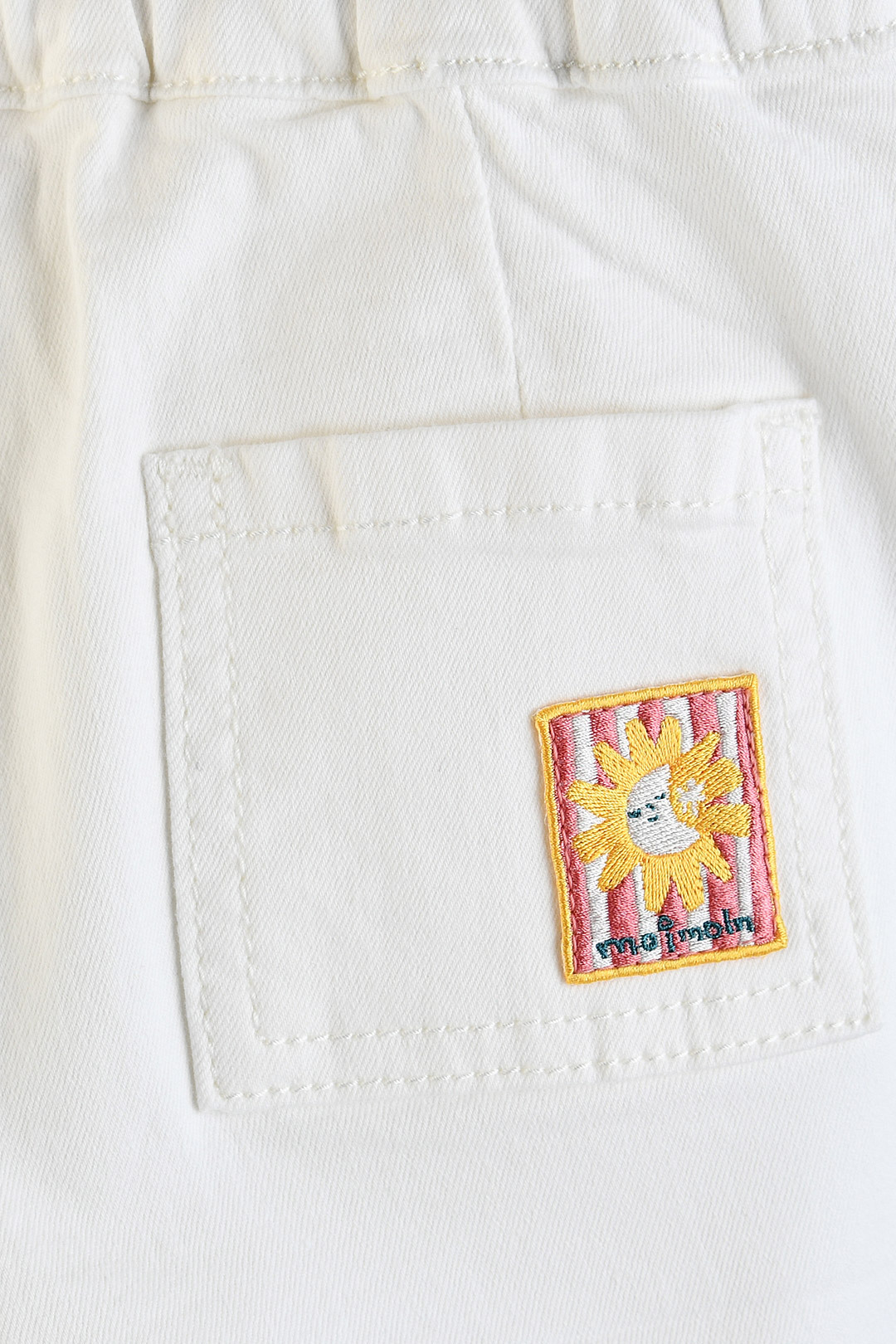 깔끔한 스타일에 시원한 컬러감과 기장감이 돋보이는 4부 데님 팬츠로, 일반 미드톤 데님 컬러와 화이트톤 데님 컬러 두가지 컬러로 구성. 뒷포켓에 귀여운 모티브로 부착된 와펜이 포인트.