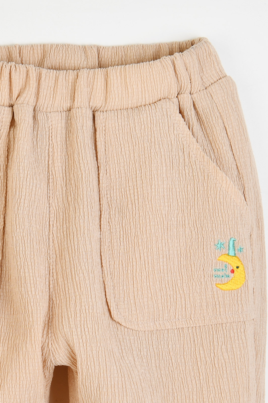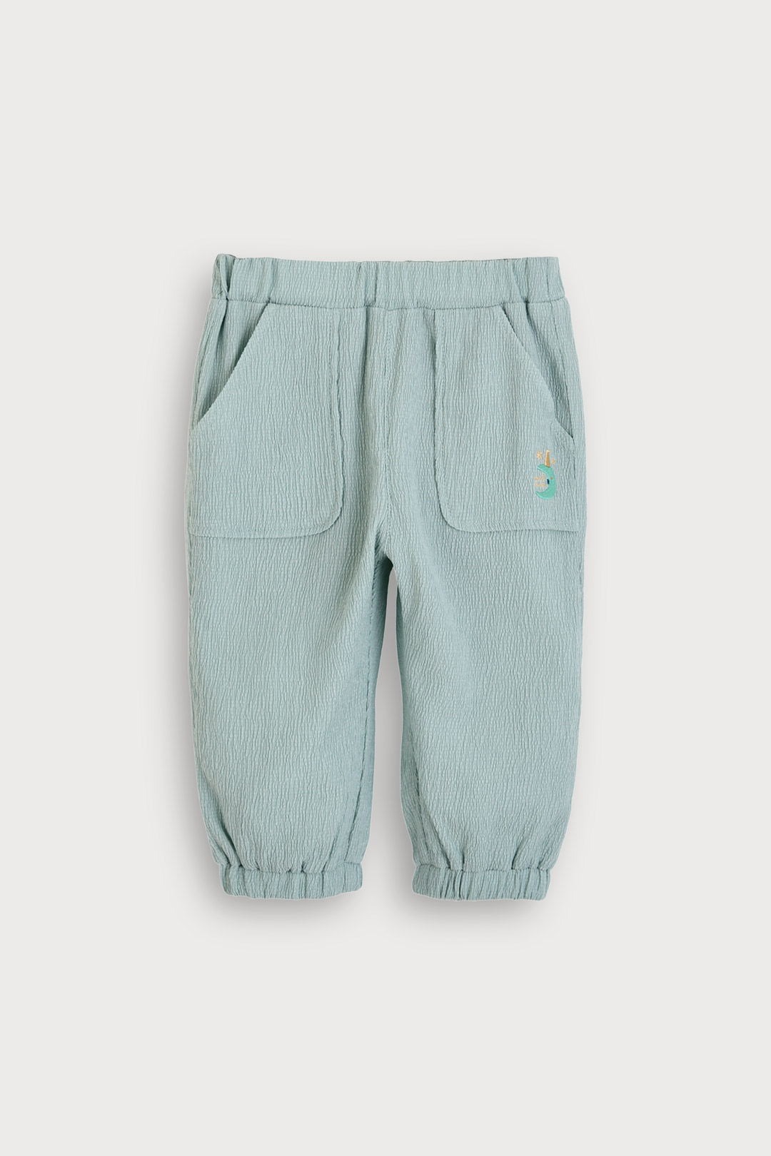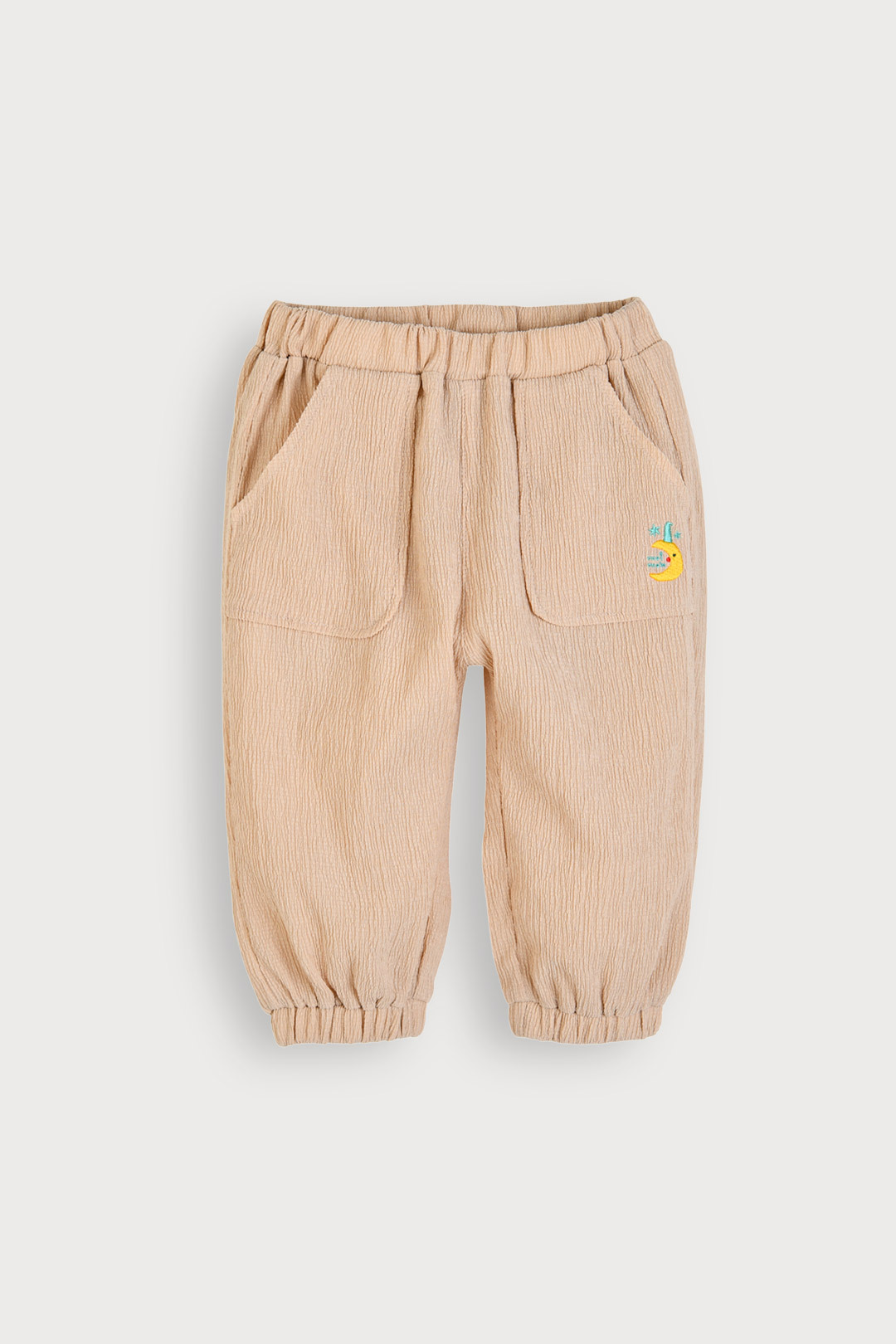 주름 요루소재가 피부에 닿았을 때 붙지 않아 시원하고 긴 기장감이 여름철 강한 햇빛으로부터 피부 손상을 덜어주는 실용적인 9부 요루 조거팬츠로, 양쪽으로 큰 아웃포켓이캐주얼한 느낌을 주고 귀여운 컬러감의 모티브 자수가 재미있는 아이템.