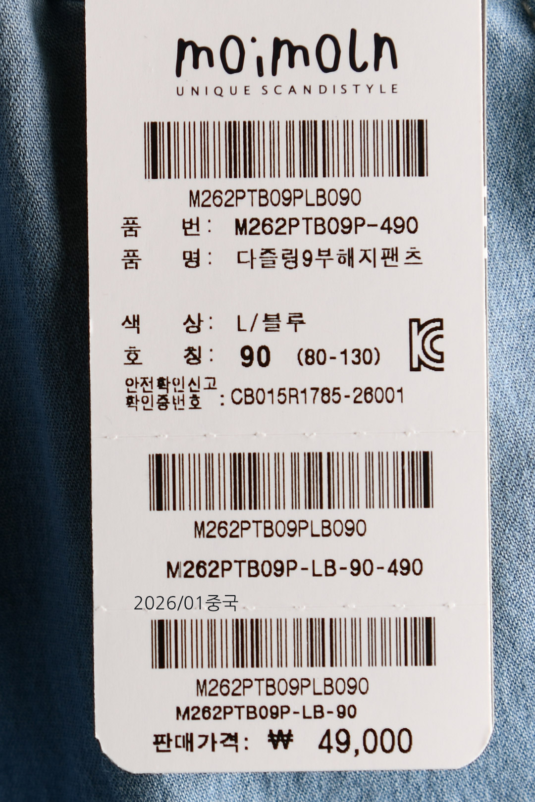| 상품코드 | M262PTB09P |