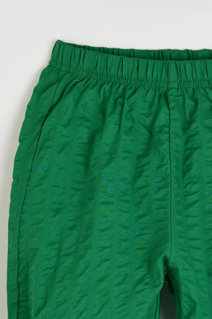 무릎을 덮는 7부 기장으로 제작되어 여름철 활동성이 뛰어남 소재 특유의 요철감이 느껴져 땀이 나도 피부에 달라붙지 않음 선명한 컬러감으로 상의와 매치 시 확실한 포인트 연출 가능 허리 밴딩 처리로 아이들이 활동하기에 매우 편안함 손세탁 권장하며 물에 장시간 방치 금지 건조기 사용 및 아이롱 금지