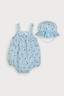수박 모티브 전판 나염과 스트라이프 패턴이 조화로운 나시 우주복 귀여운 무드를 완성해 주는 전용 모자 세트 구성 등쪽, 겨드랑이, 어깨끈에 고무줄 처리를 하여 별도 여밈 없이도 간편한 착탈의 가능 엔자임 가공을 통해 개선된 부드러운 터치감과 선명한 컬러감 단독 손세탁 권장