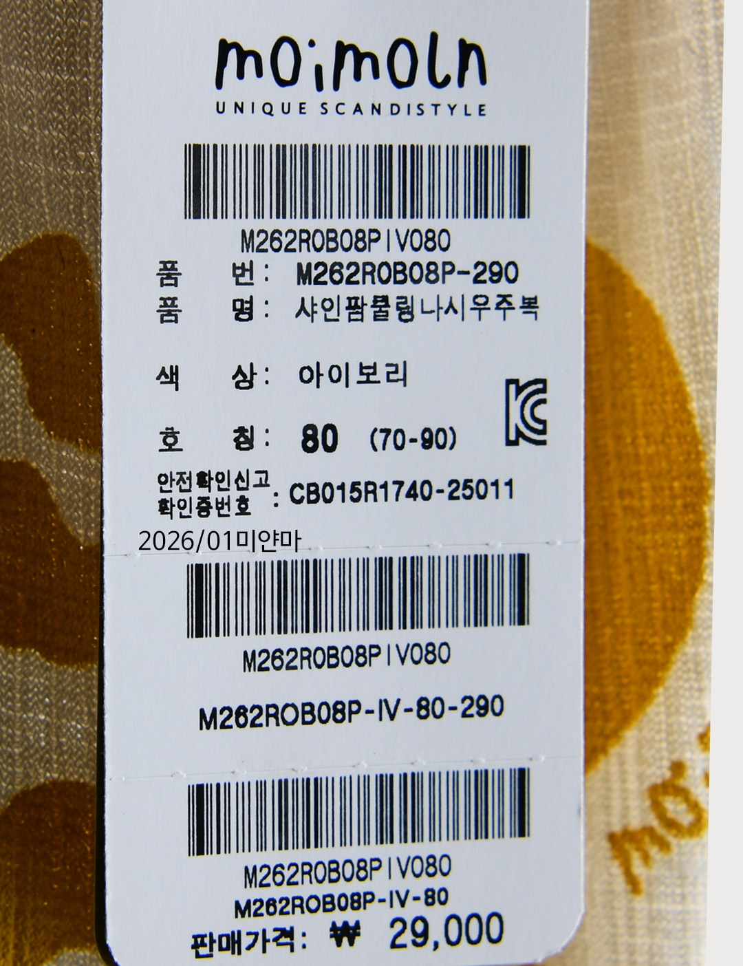 상품명 [모이몰른] 샤인팜쿨링나시우주복 [여름]