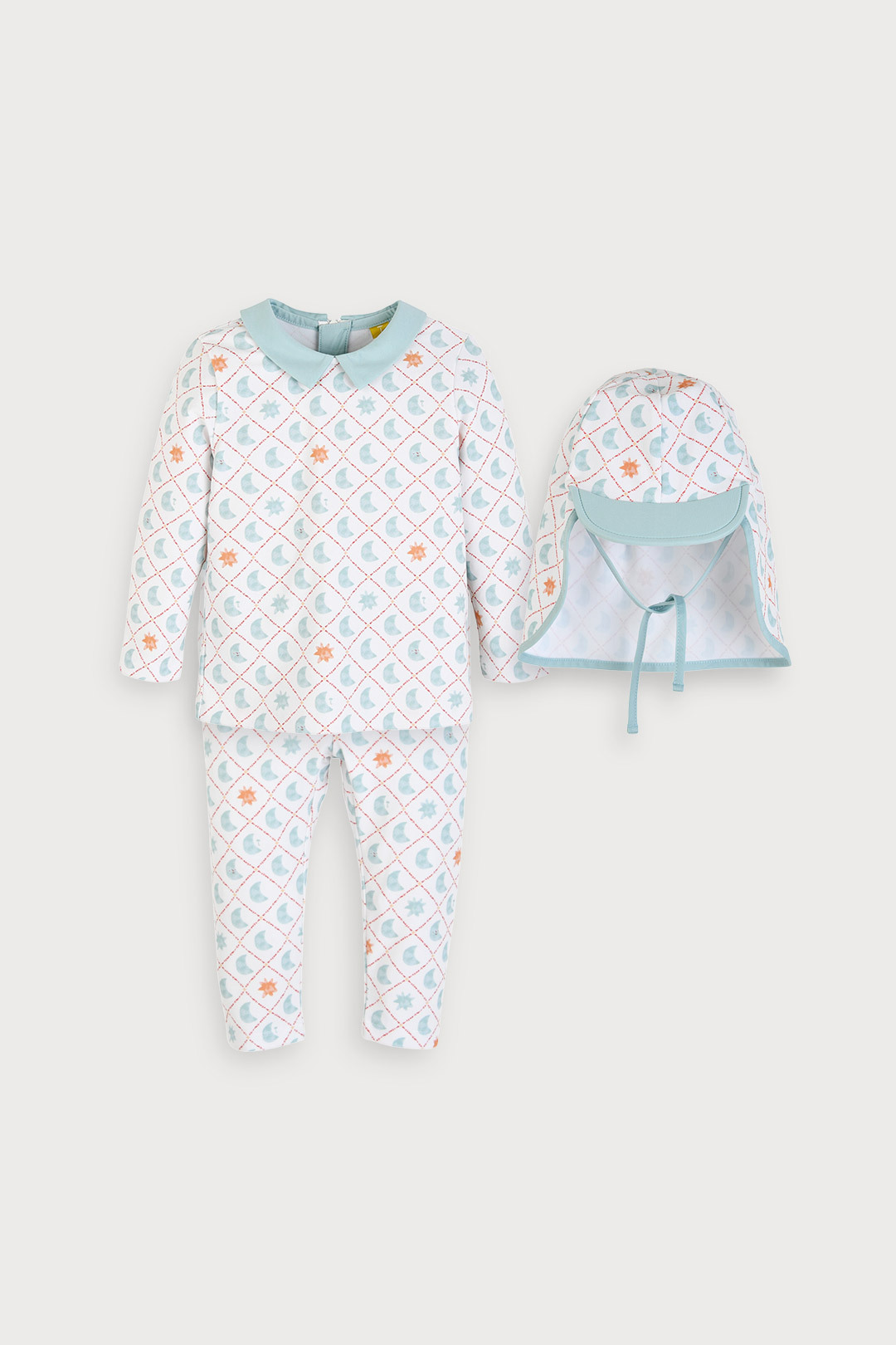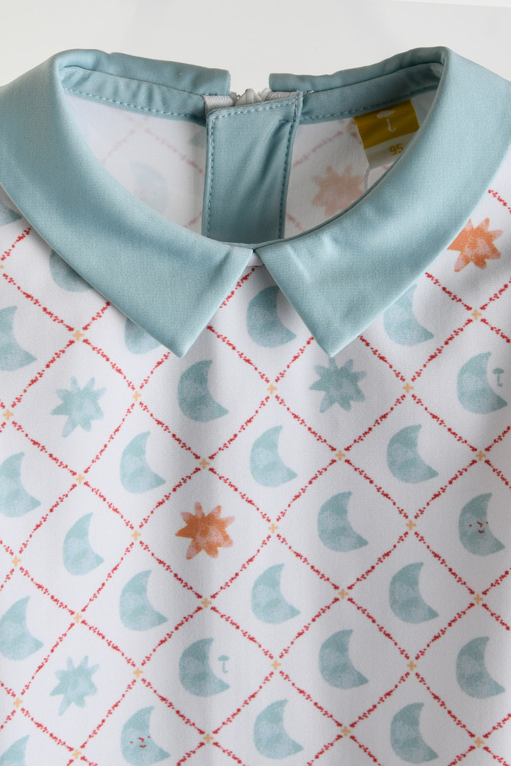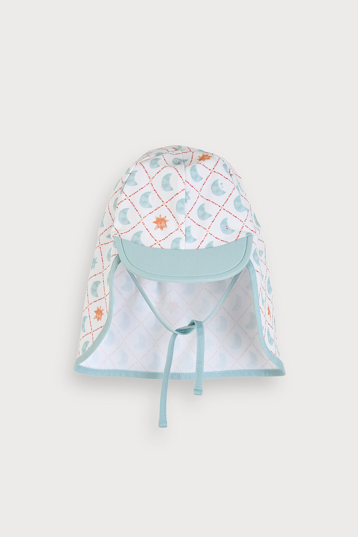 모자 세트로 실용성을 높였으며 충분한 9부 기장감으로 안전하게 물놀이 가능한 아이템.