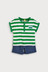 상의 스트라이프 패턴으로 깔끔한 포인트 연출.