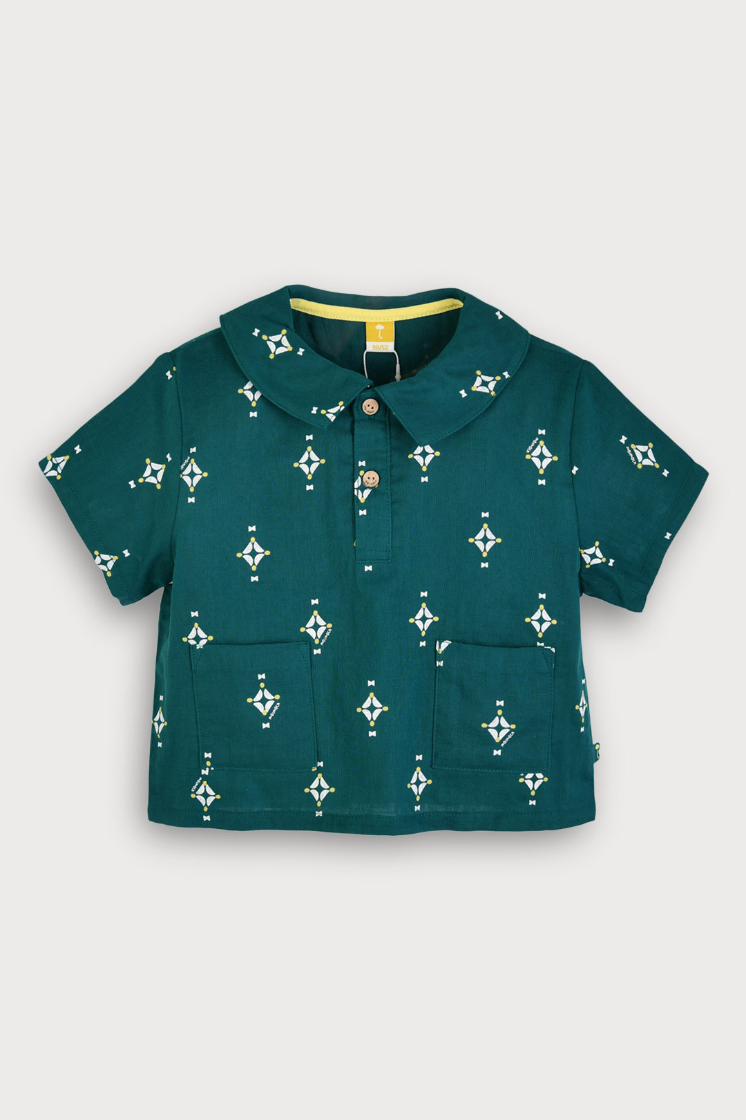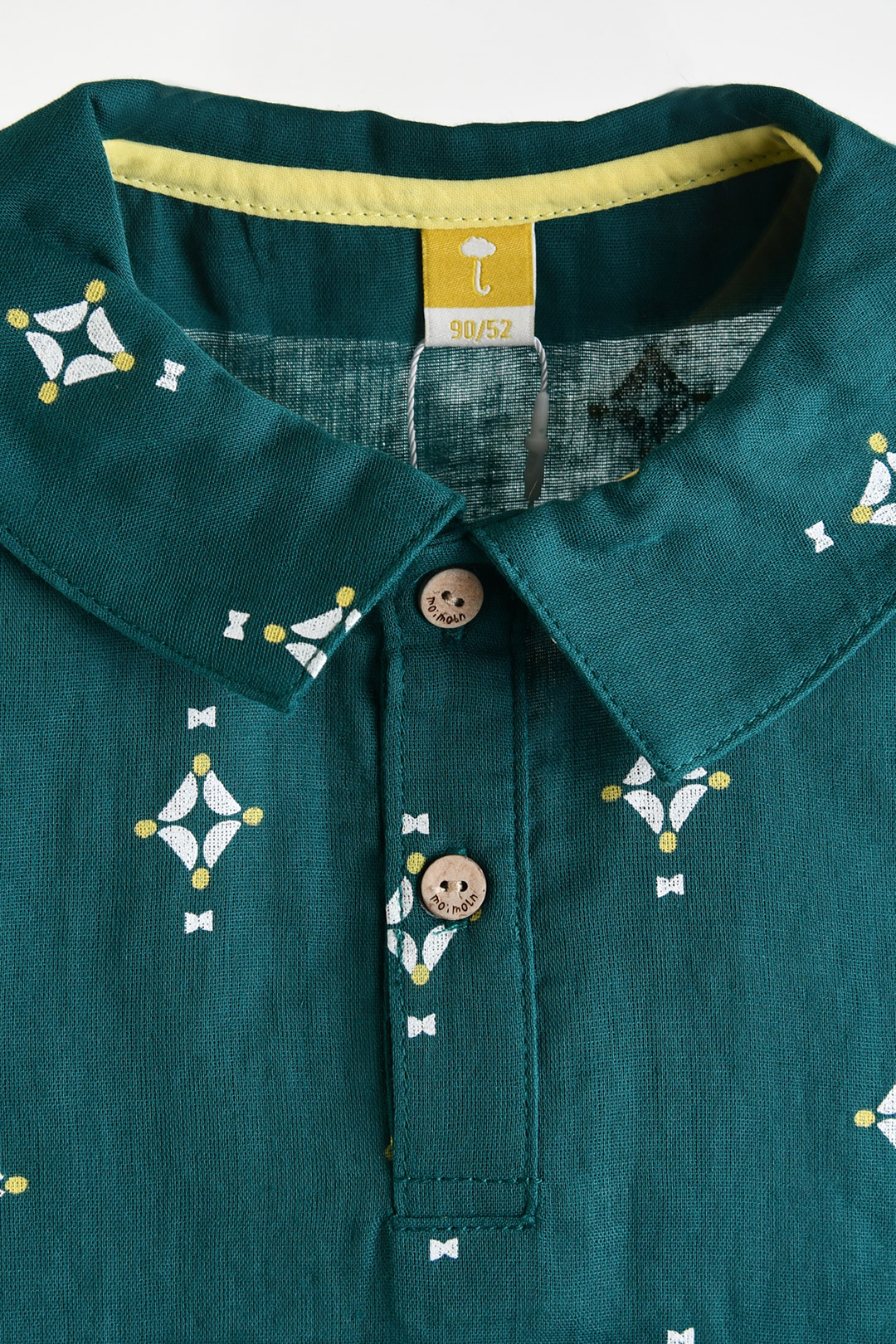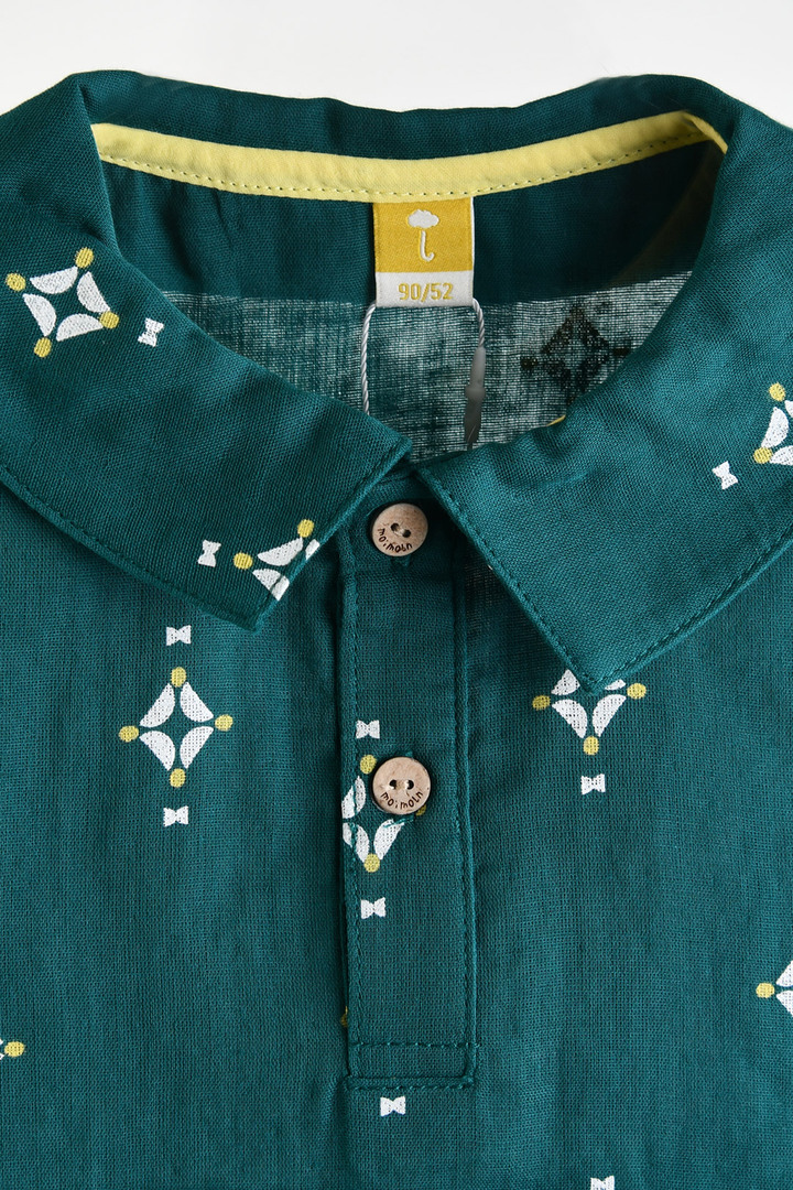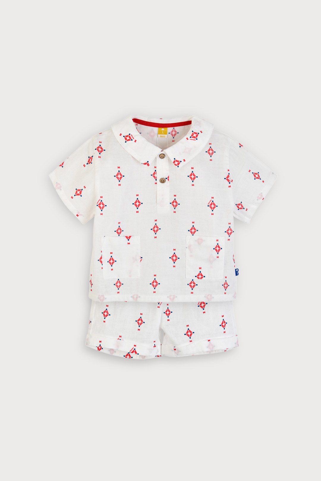 카라 디자인을 단정한 분위기로 제안한 이중 거즈 면 100% 상하 세트.