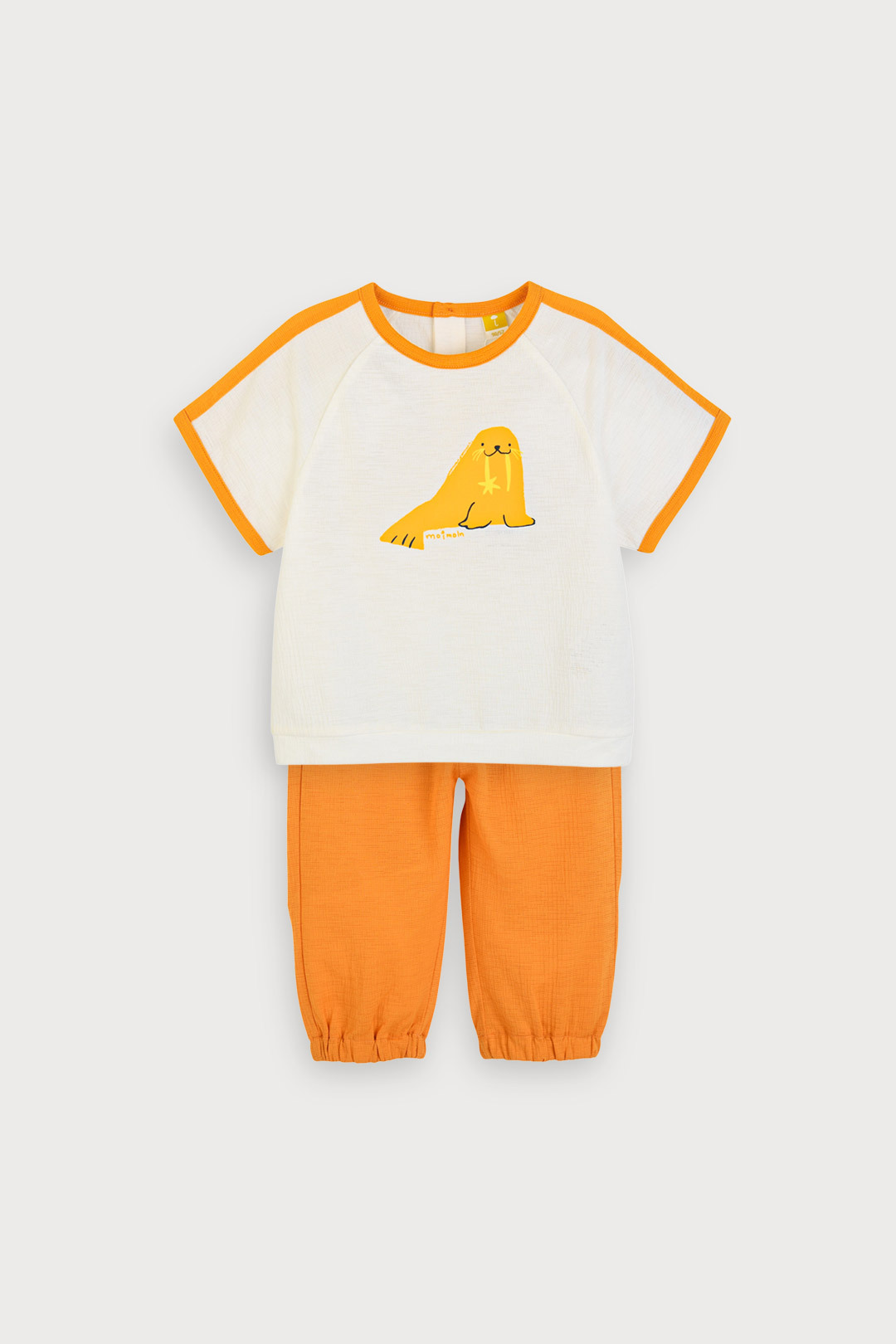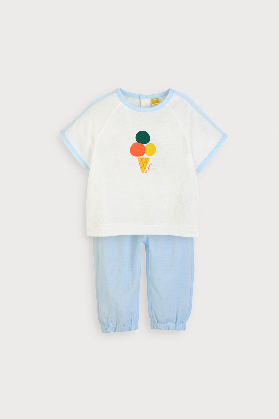반팔 상의와 7부 하의 구성으로 활동량 많은 아이들도 편한 착용 가능.