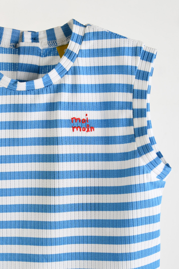 산뜻한 스트라이프 패턴과 냉감 골지 소재의 4부 나시 상하복