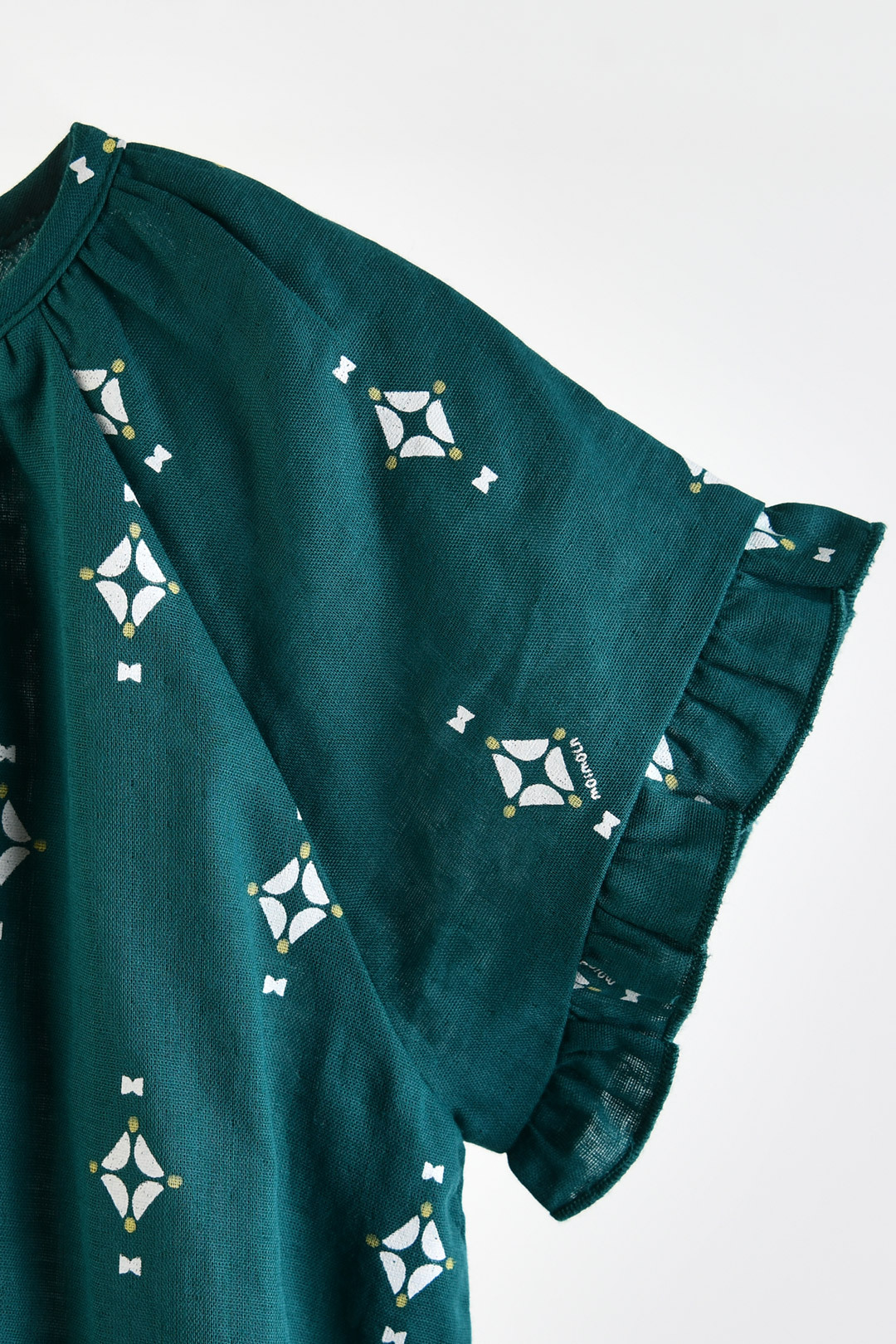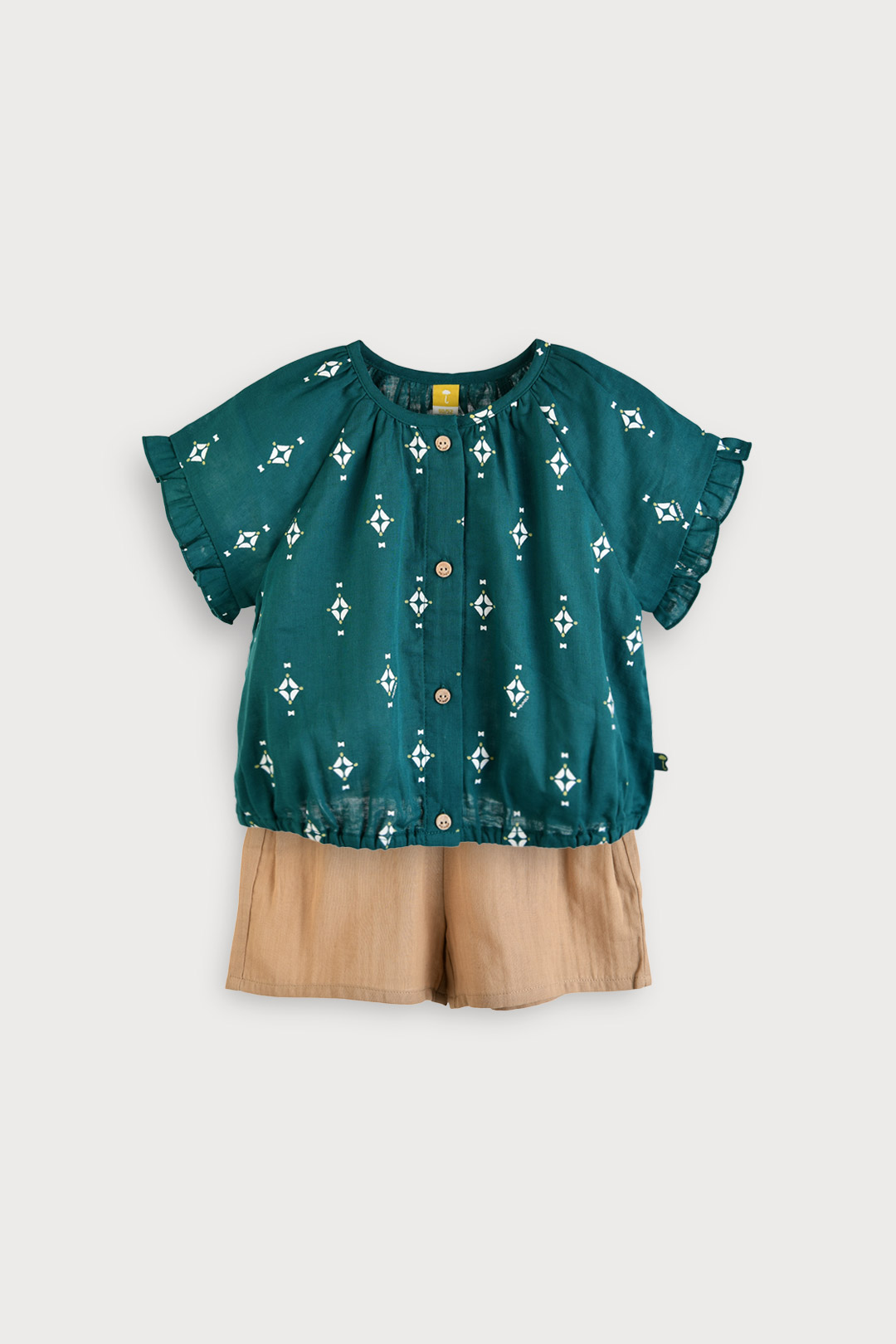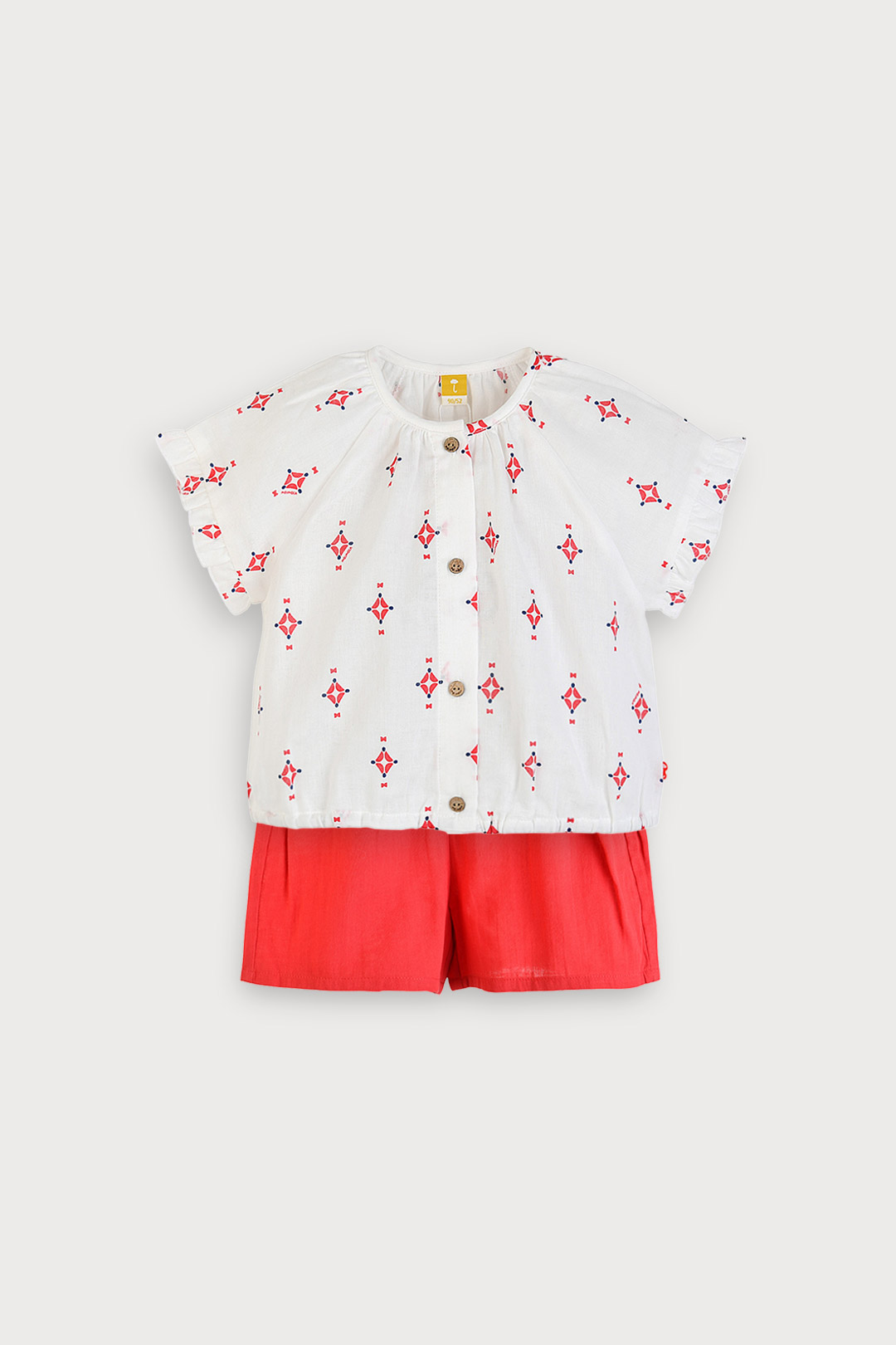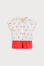 소매 끝 프릴 디테일로 블라우스 디자인의 모슬린 상하 세트. 이중거즈 면 100% 소재로 가볍고 부드러워 한여름까지 쾌적한 착용감을 주는 아이템. 상하 세트 구성으로 데일리룩부터 외출룩까지 활용도 높은 아이템.