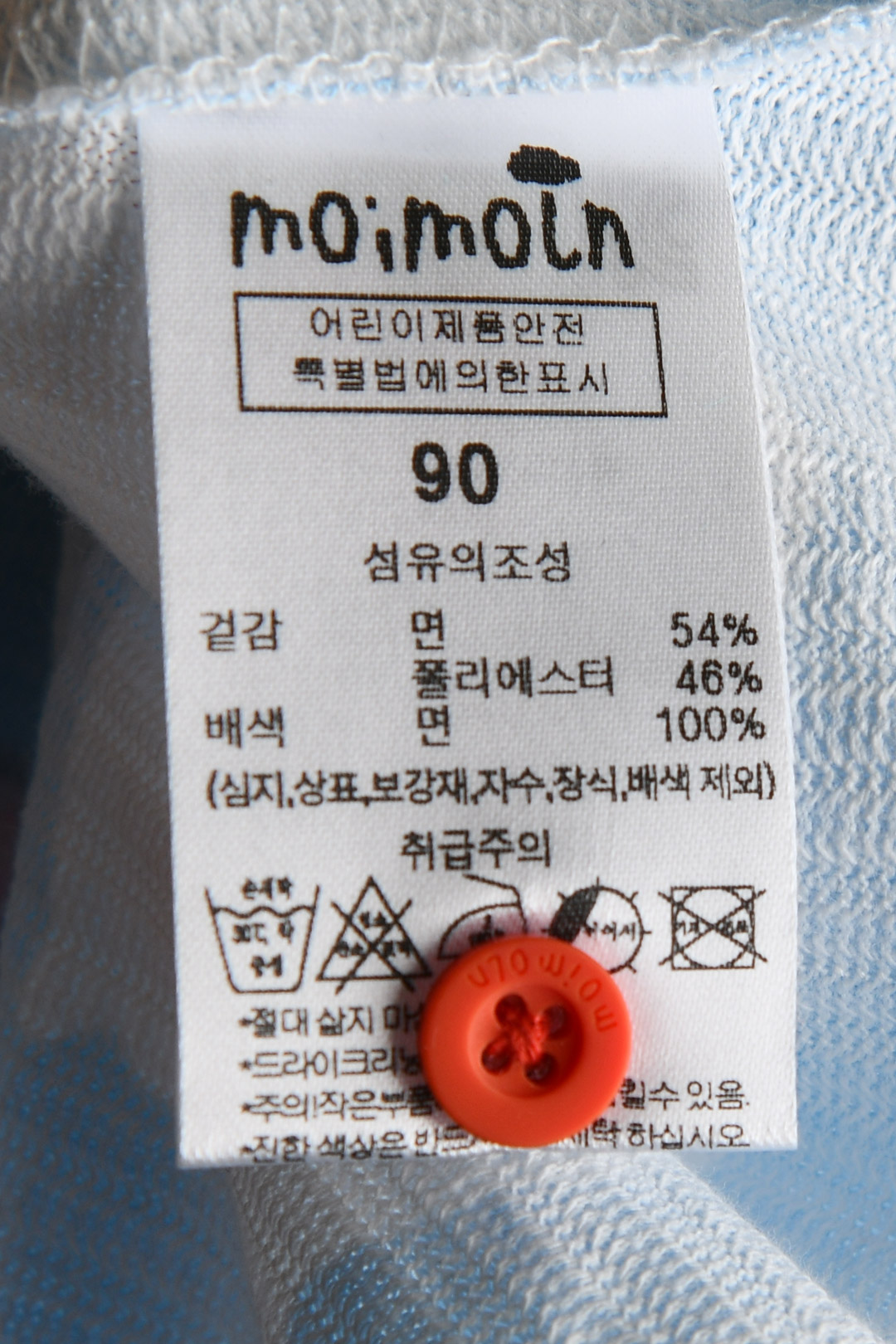 제품소재 (겉감)면54%,폴리에스터46%(배색)면100%