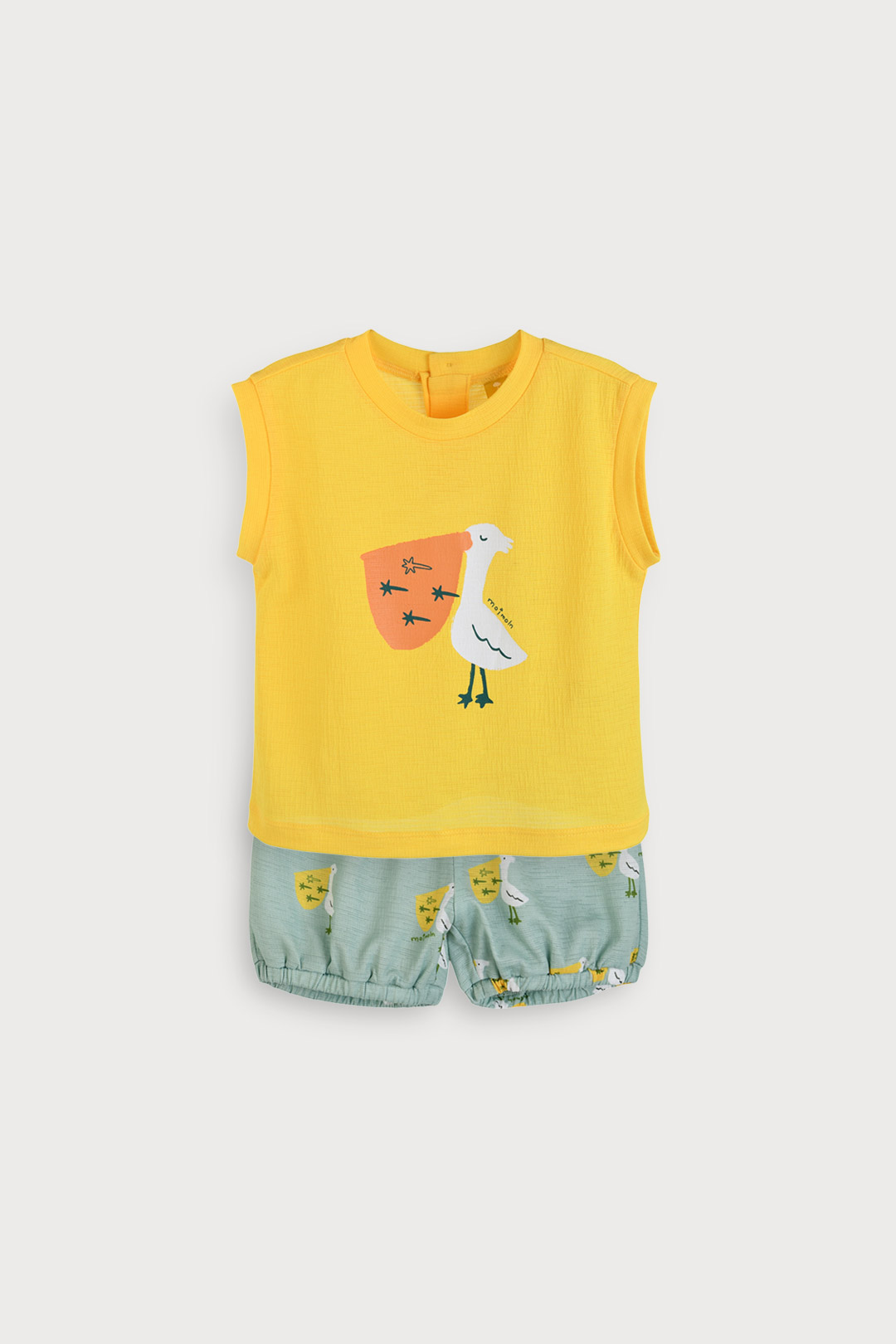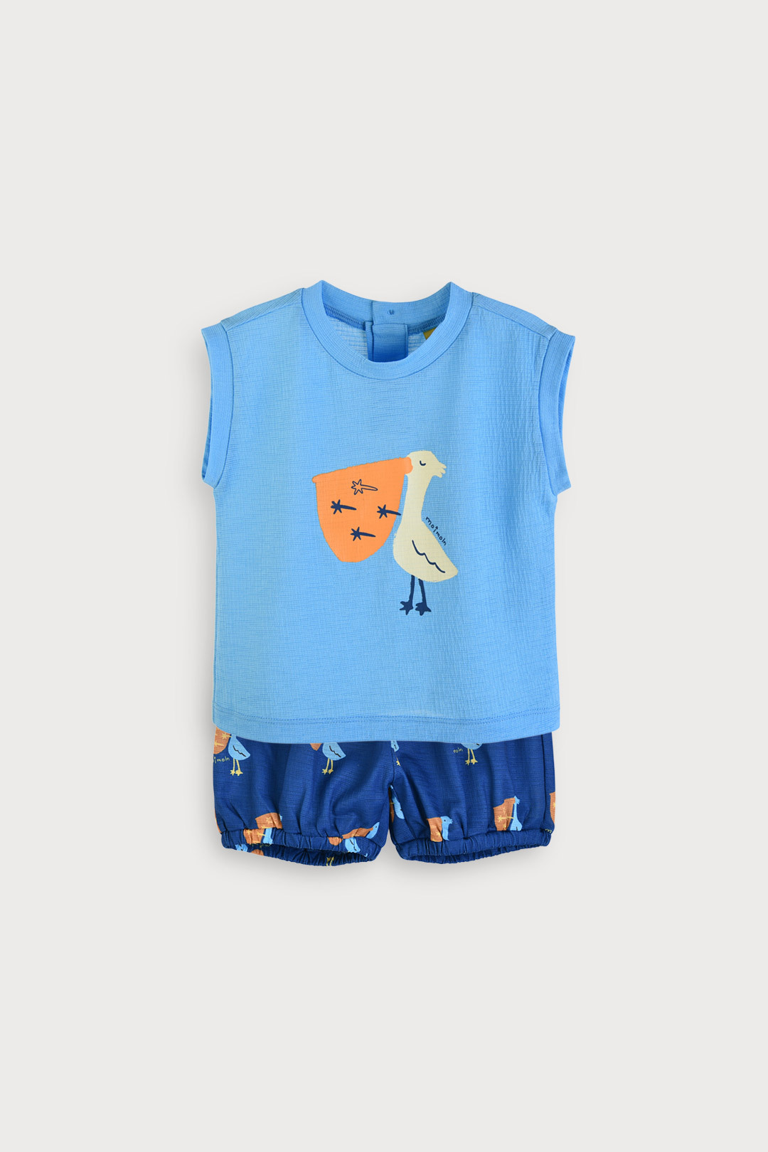 시원한 냉감 소재와 귀여운 펠리컨 그래픽의 토들러 쿨링 나시 상하복