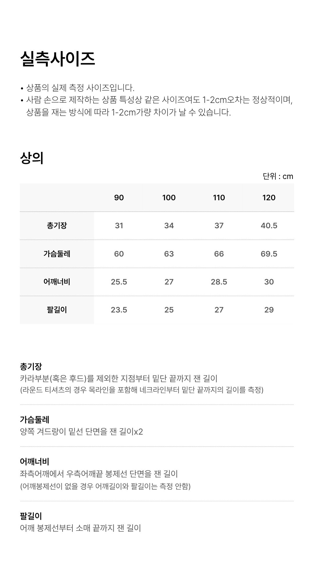 치수 90, 100, 110, 120