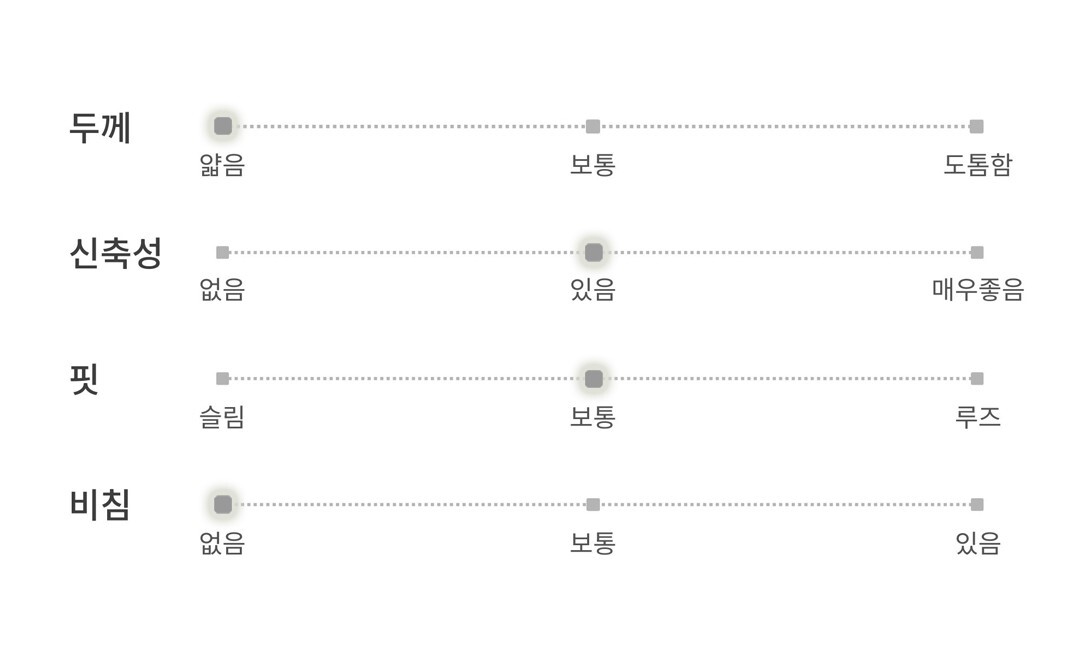 • 부드럽고 신축성 있는 소재로 활동성이 우수