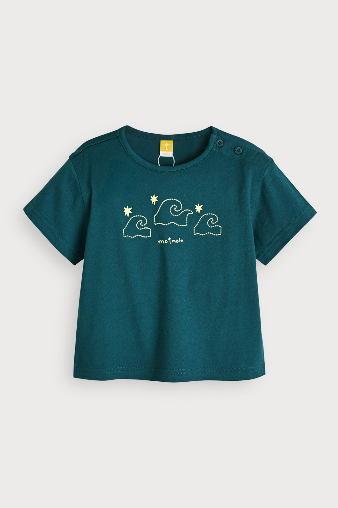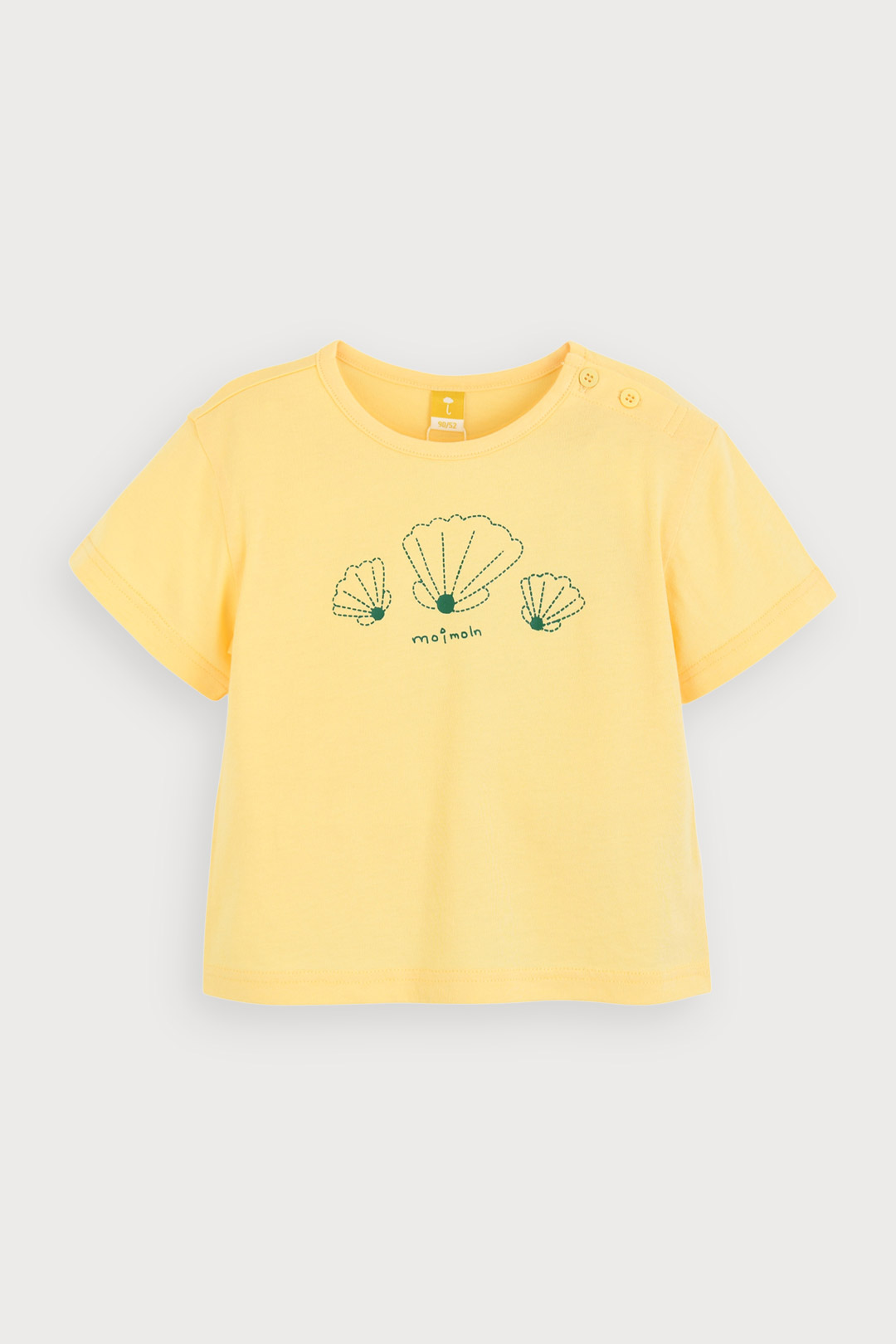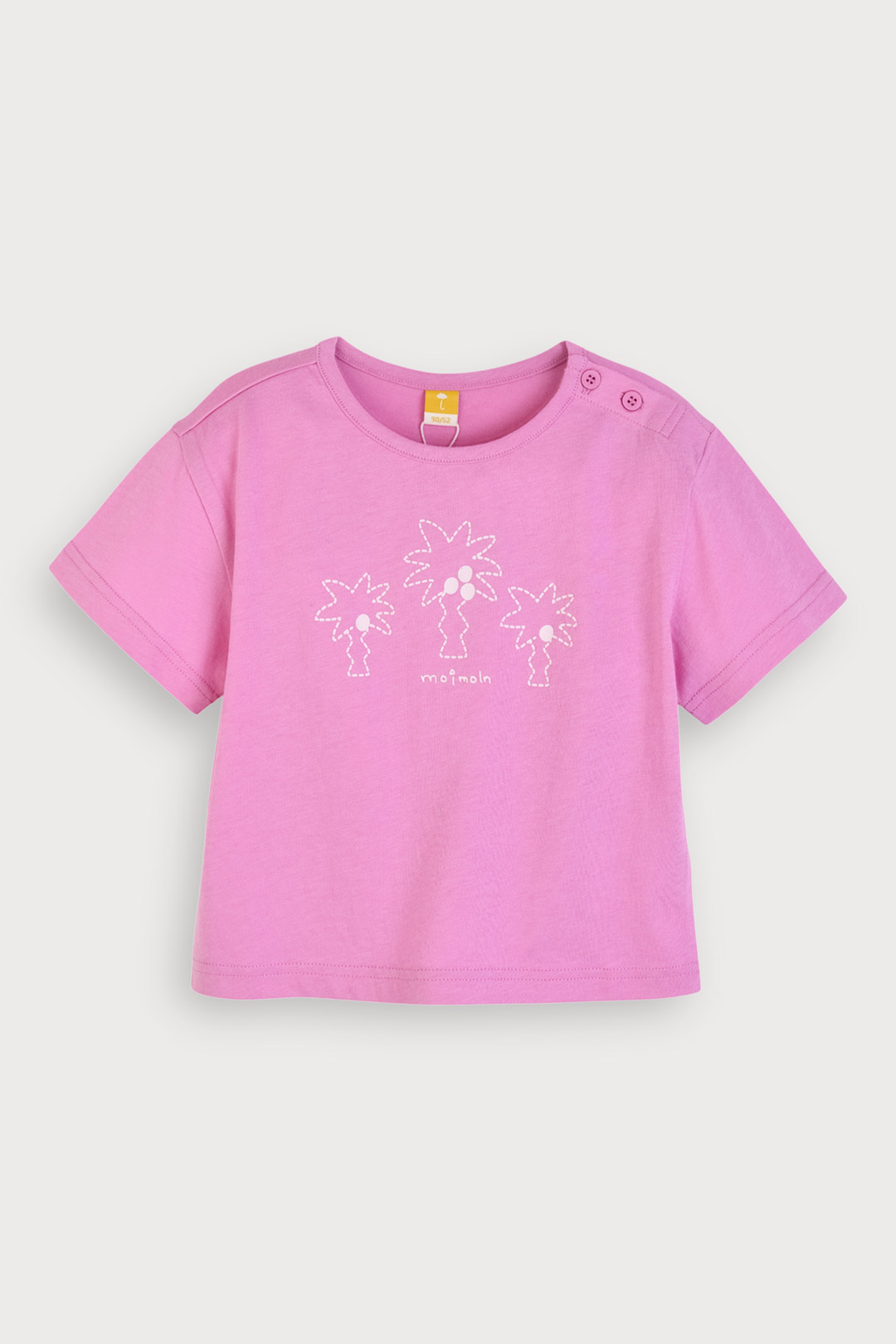 얇고 부드러운 모달 소재를 사용한 4부 소매 싱글 티셔츠로, 선명한 컬러감이 돋보이는 티셔츠. 가슴 중앙에 스티치 형태로 새겨진컬러 계열별로 각기 다른 여름의 시즌감이 느껴지는 모티브 나염이 포인트.