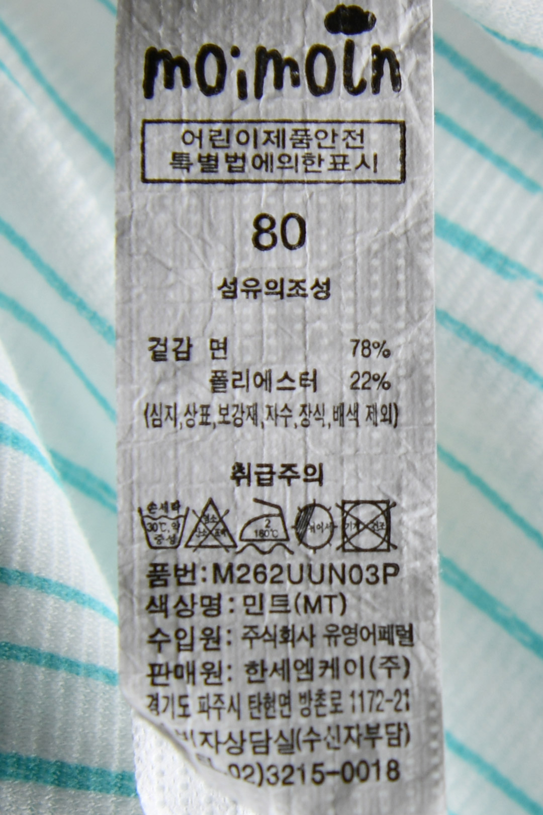 | 세탁방법 및 취급시 주의사항 | 본 세품은 손세탁 하십시오(케어라벨 참고) |