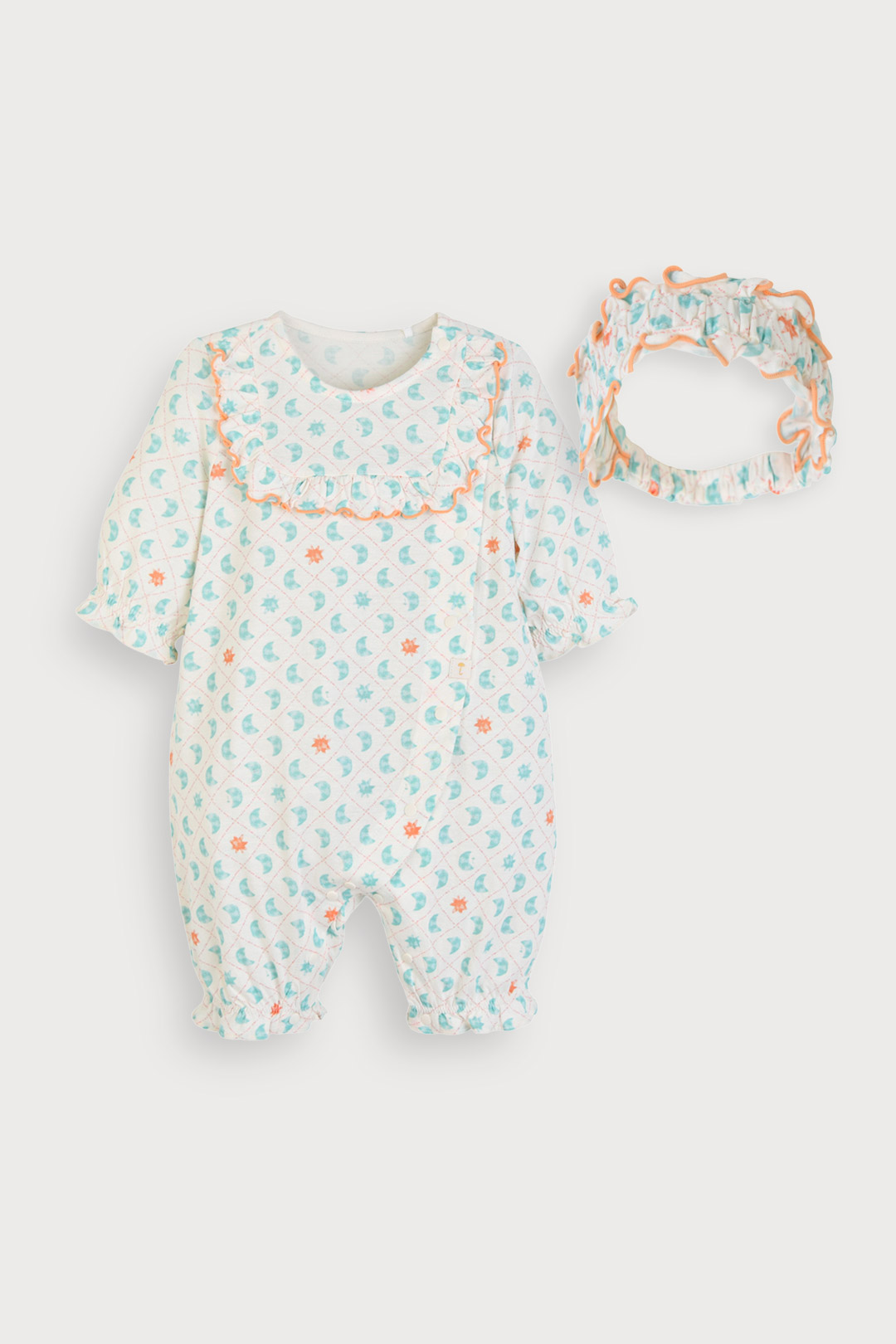 프릴 셔링 디테일로 귀여움을 더한 7부 우주복 세트