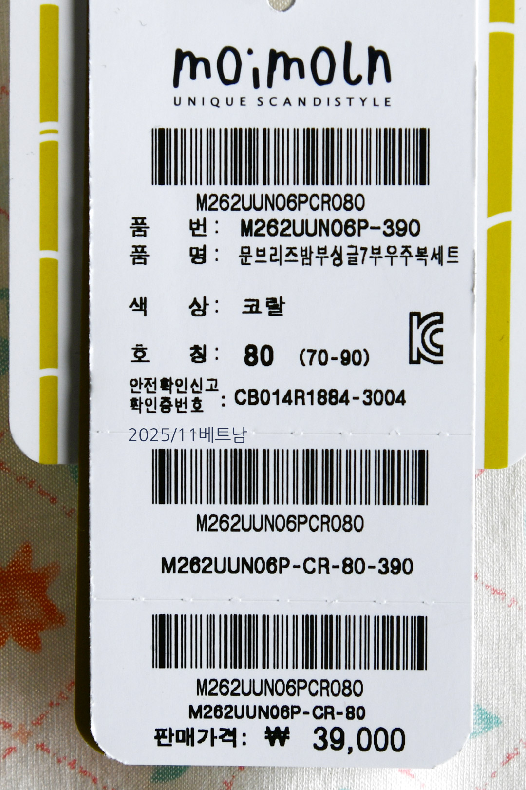 | 상품명 | [모이몰른] 문브리즈밤부싱글7부우주복세트 [여름] |