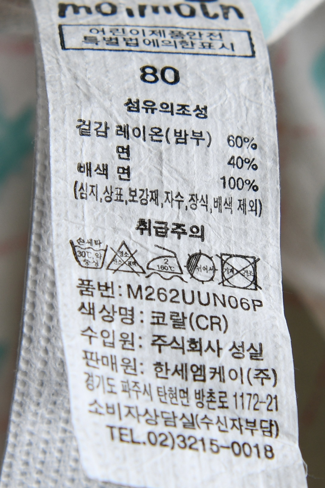 | 세탁방법 및 취급시 주의사항 | 본 세품은 손세탁 하십시오(케어라벨 참고) |