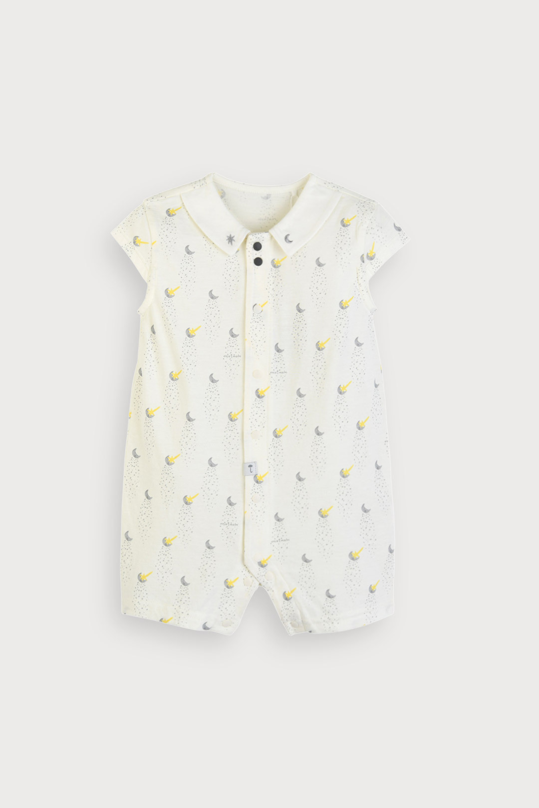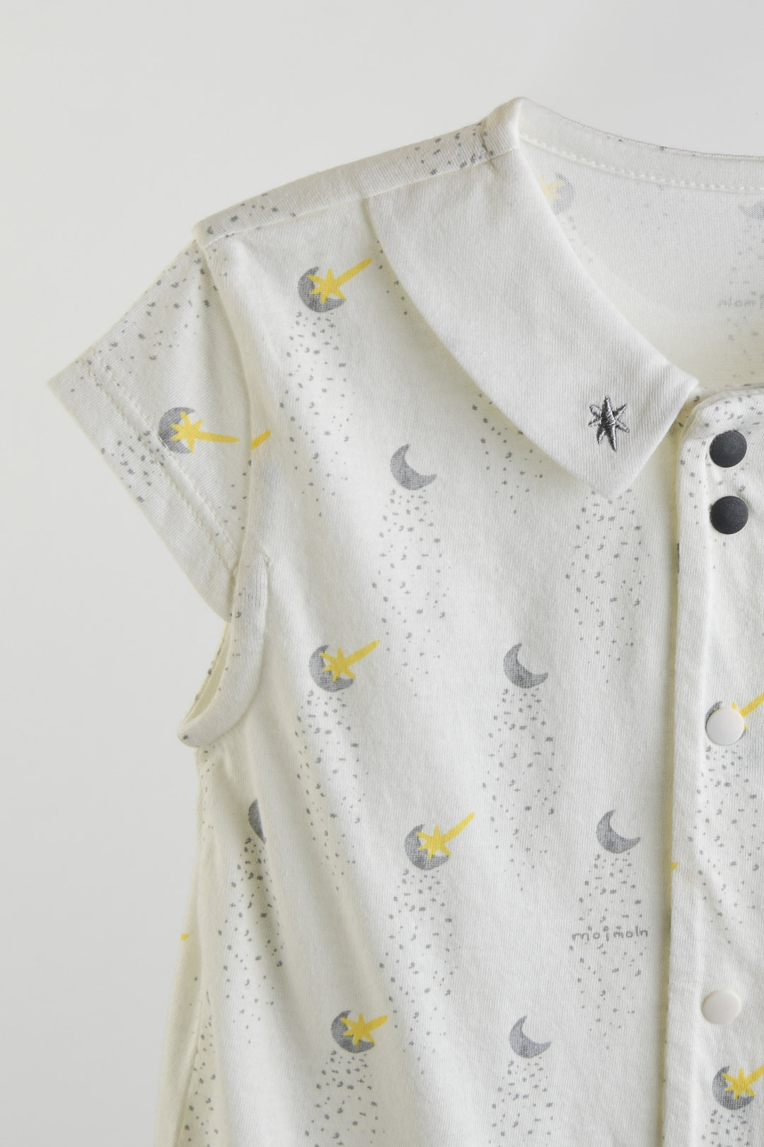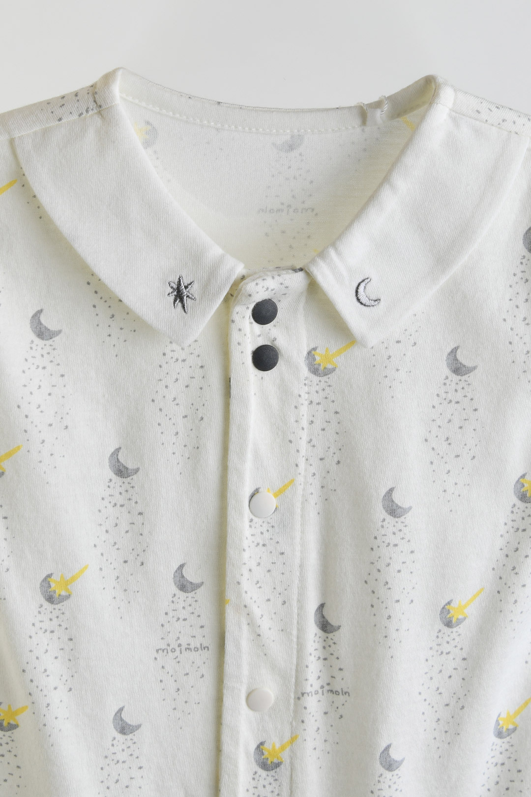 서정적인 별 나염과 자수 카라 디테일의 베이비용 모달 반팔 우주복
