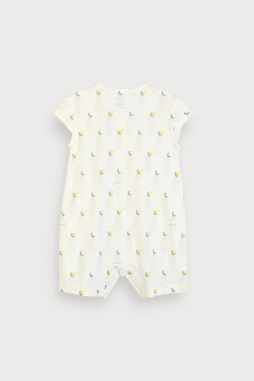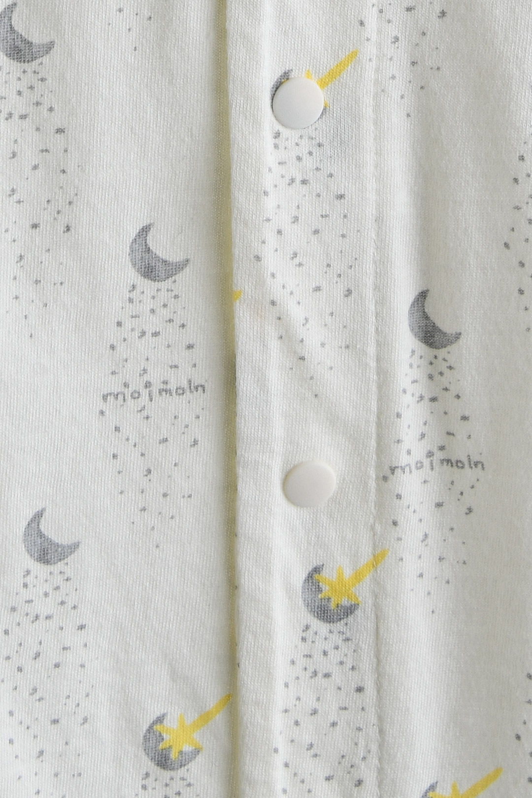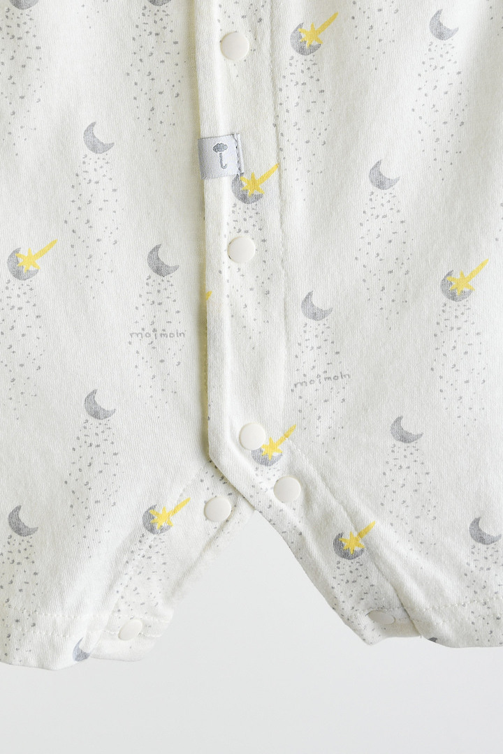 서정적인 별 나염과 자수 카라 디테일의 베이비용 모달 반팔 우주복