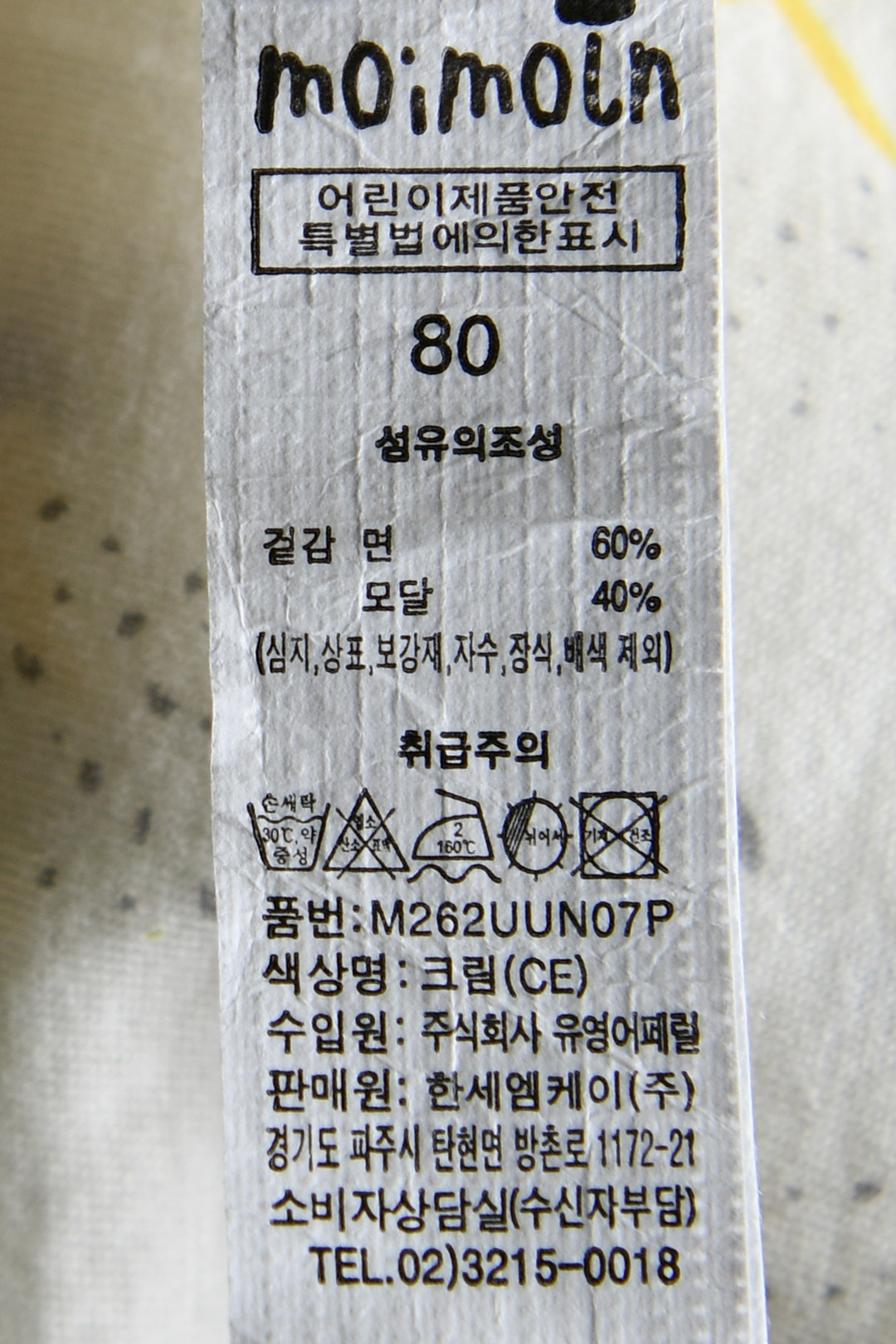 | 세탁방법 및 취급시 주의사항 | 본 세품은 손세탁 하십시오(케어라벨 참고) |