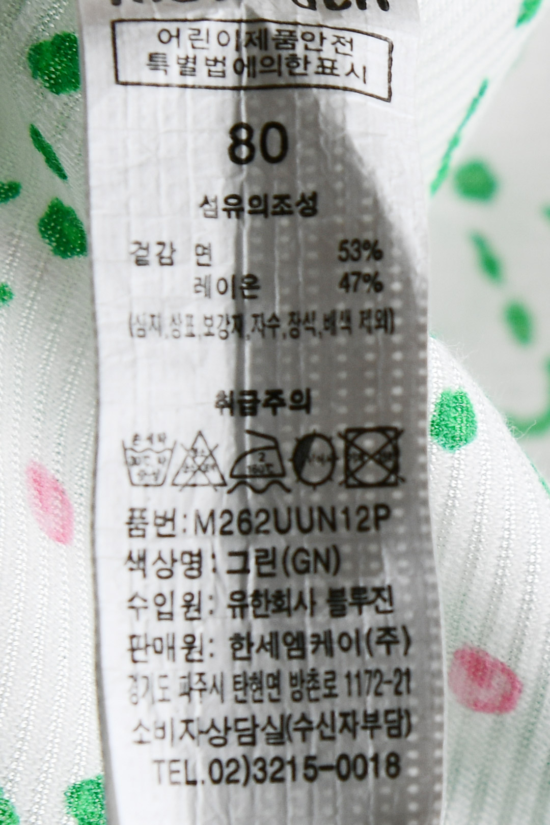 제품소재 (겉감)면53%,레이온47%